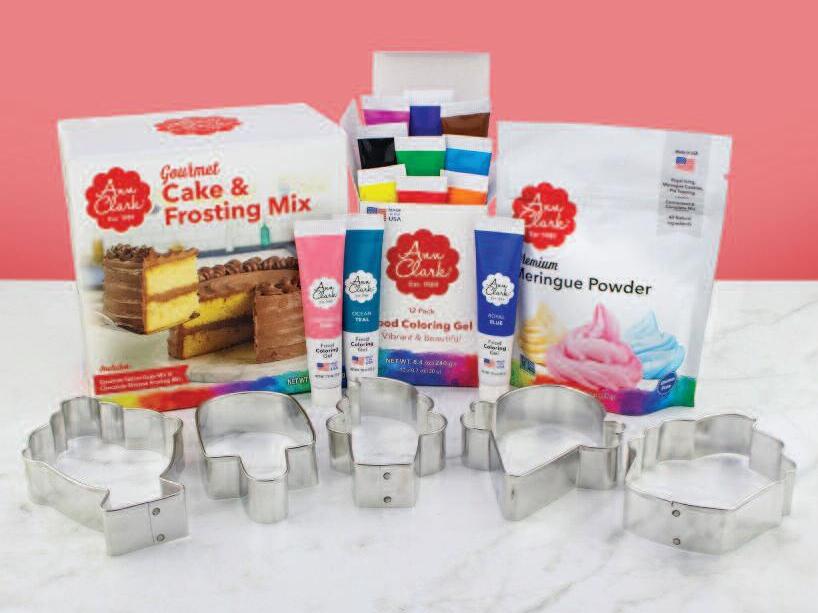 mixes that make cookies and other baked goodies, decorations, flavorings and baking supplies from parchment paper to rolling pins