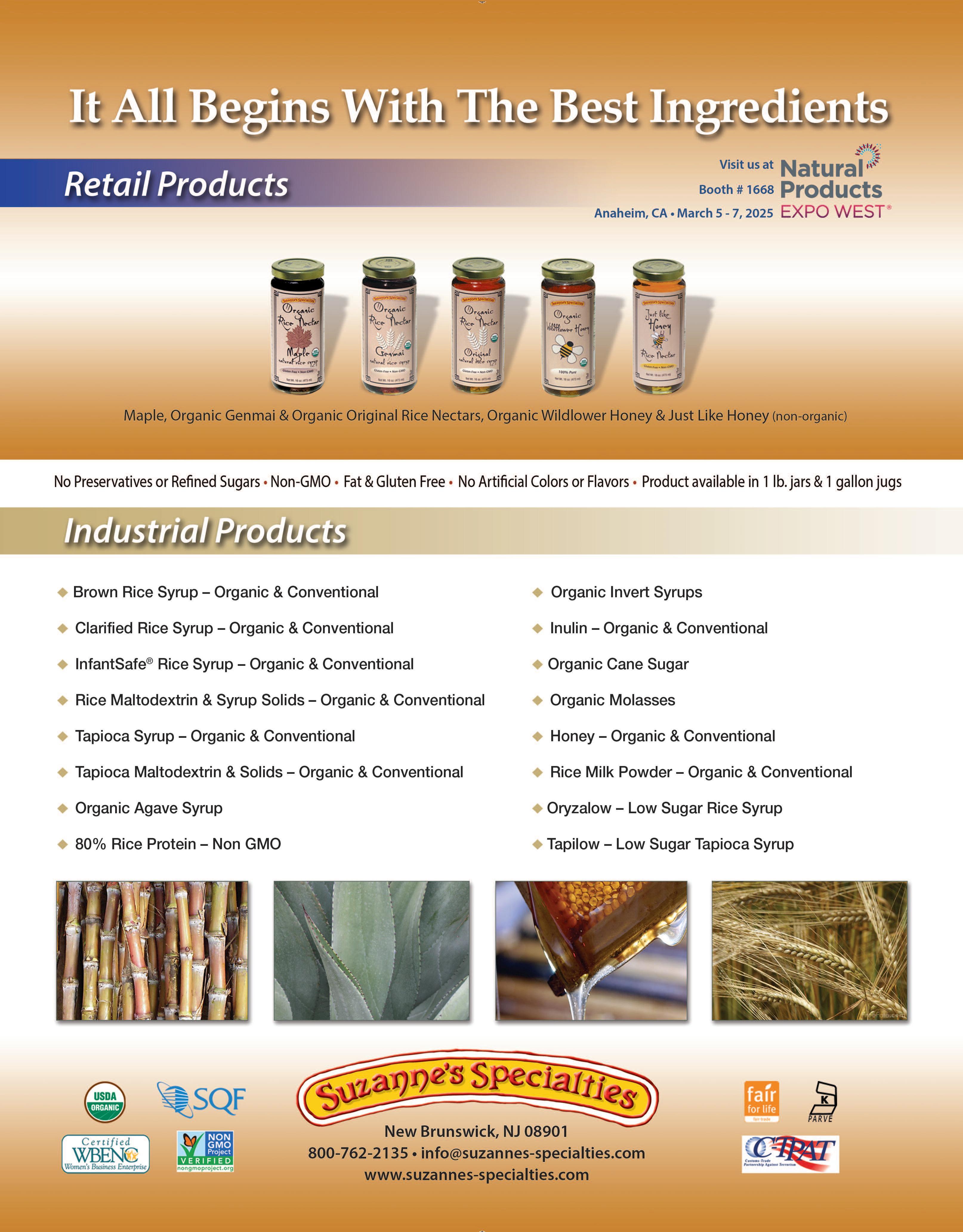 “As we continue to grow in home & gift as well as gourmet food & natural grocery, we want all our packaging to be beautifully cohesive,” said founder and CEO Ginger Frank “That way, whether our wholesale customers carr y just a few flavors or the complete line, it will always look gorgeous