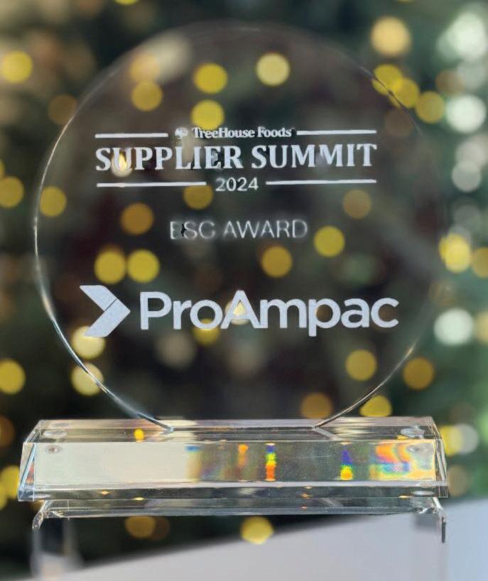 ProAmpac was recognized with TreeHouse Foods’ prestigious 2024 Supplier Value Award for outstanding contributions to Environmental, Sustainability and Governance This award highlights ProAmpac’s environmental stewardship, innovation and service excellence across TreeHouse’s operations and supply chain