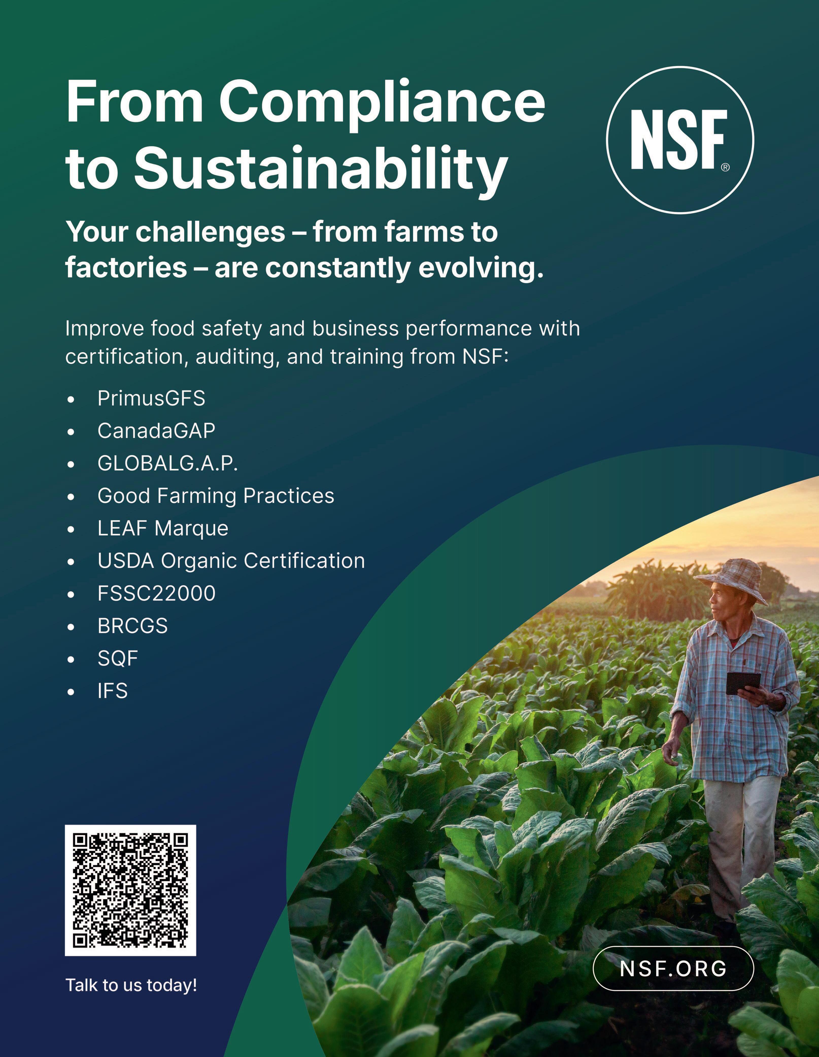 SB: For 80 years, NSF, a leading global public health and safety organization has been at the forefront of food safety, d e v e l o p i n g e