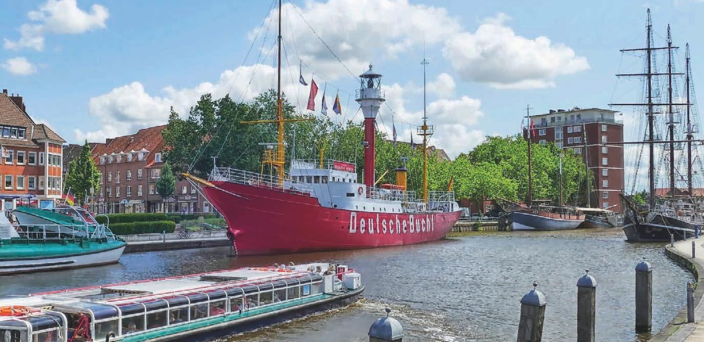 Die Internationale Dollard Route führt durch lebhafte Städte, verträumte kleine Ortschaften und quirlige Häfen bis zur Insel Borkum mitten im Weltnaturerbe Wattenmeer. Krönung der Tour ist die Fährfahrt über die Meeresbucht Dollart.