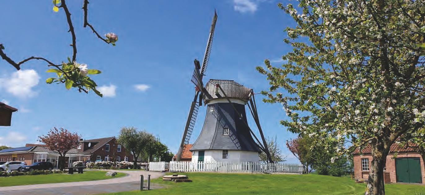 Unverwechselbar für Ostfriesland sind unsere schönen Gulfhöfe. Sie prägen wesentlich das Bild unserer Kulturlandschaft. Die typische Bauernhausform entstand im 16. und 17. Jahrhundert, nachdem das Land durch verbesserte Entwässerungstechniken mit Wind- und Wassermühlen auch für den Anbau von Getreide nutzbar war. Dieses wurde in der hinteren Scheune – dem „Gulf“ – gelagert. Mit dem Getreideanbau kamen auch die vielen Mühlen in die Region. Wenn der Wind früher wehte, wurde fast in jedem Dorf Getreide gemahlen. Viele von ihnen sind noch erhalten und funktionstüchtig. An „Backtagen“ wird auch heute noch aus dem frisch gemahlenen Korn Brot gebacken. Einige dieser Mühlen wurden umgebaut und beheimaten heute Teestuben mit wunderschönem Ausblick oder ein Museum.