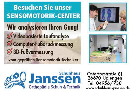 F Anja und Gerd Dahlweg Obenende Süd 29a 26670 Uplengen-Nordgeorgsfehn Tel. 04956/92 78 45 Fax 04956/92 78 37 anjadahlweg@yahoo.de www.ferienlandhaus-dahlweg.de Adresse Unterkunft: An der Leegde 9, 26670 Uplengen-Klein-Remels Das ehemalige Bauernhaus liegt inmitten von Wiesen und Wallhecken und ist für bis zu 8 Personen eingerichtet.Vier großzügige Schlafzimmer, eine große Küche mit Ess- & Wohnbereich, zwei Badezimmer und ein Spielzimmer bieten einen idealen Rahmen für einen entspannten Urlaub. Buch.-Nr. 35649 Größe qmca. 200 Gesamtbetten8 EZ/DZ/MB0 / 4 / 0 ZB/KB3 / 1 Preis/Nacht J ab 3 Nächte115,– (1–4 P.) je weitere Person15,–FERIENLANDHAUS „DAHLWEG“ F Specht Autoservice Schützenstraße 12 26670 Uplengen-Remels Telefon 04956-1337 Öffnungszeiten: Mo.–Fr. 08:00 – 17:00 Uhr, Sa. nach Vereinbarung Kfz-Service • Karosserieinstandsetzung • Elektrik / Elektronik • Fehlerdiagnose Reifenservice • Gebrauchtwagen • HU/AU Eine Werkstatt – Alle Marken AUTOFIT® ist die Meisterwerkstatt für praktisch jede Automarke. Hauptuntersuchung täglich bei uns!