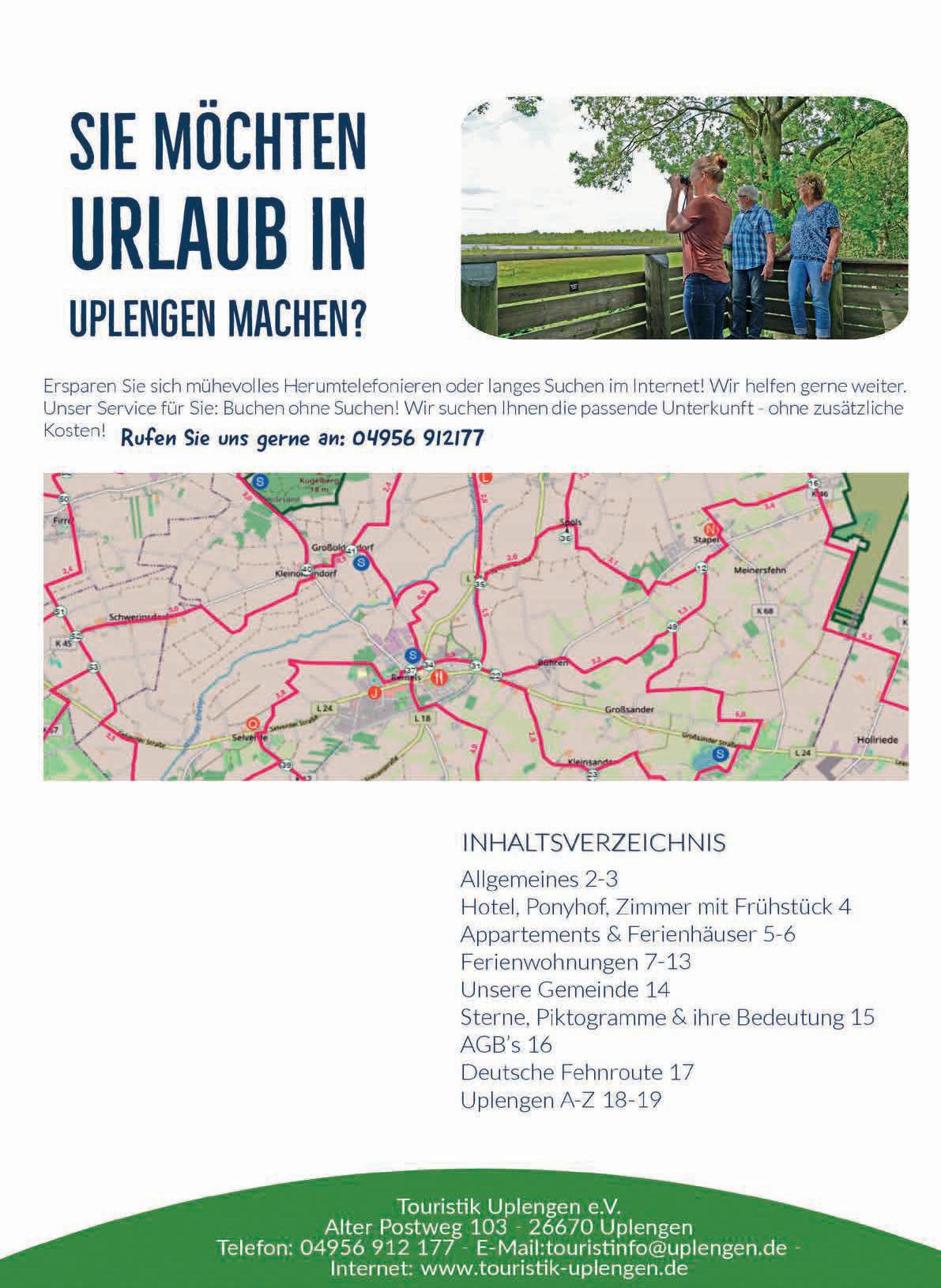 Herausgeber: Tourist Uplengen e.V. in Kooperation mit der Touristik GmbH Südliches Ostfriesland