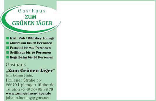 Gasthaus Zum Grünen Jäger Hollener Straße 36, Jübberde Tel. 04956 / 928 878