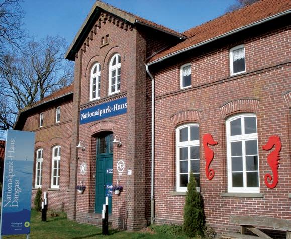 Nationalpark-Haus Dangast Nationalpark-Haus Dangast, Zum Jadebusen 179, 26316 Dangast Tel.: 0 44 51-70 58, www.nationalparkhaus-wattenmeer.de/dangast Öffnungszeiten: März bis November: Di. - Fr.: 9:00 - 12:00 und 14:00 - 18:00 Uhr. Sa., So. + Feiertage: 14:00 - 18:00 Uhr. Eintritt frei (Spendenbox), Winteröffnungszeiten s. Homepage, Schul- und Gruppenveranstaltungen ganzjährig nach Vereinbarung, Programmübersicht auf Anfrage.