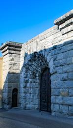 This castle-like house (of which only the original wall and wooden door remain) belonged to Paris Singer, son of the creator of the Singer sewing machine.