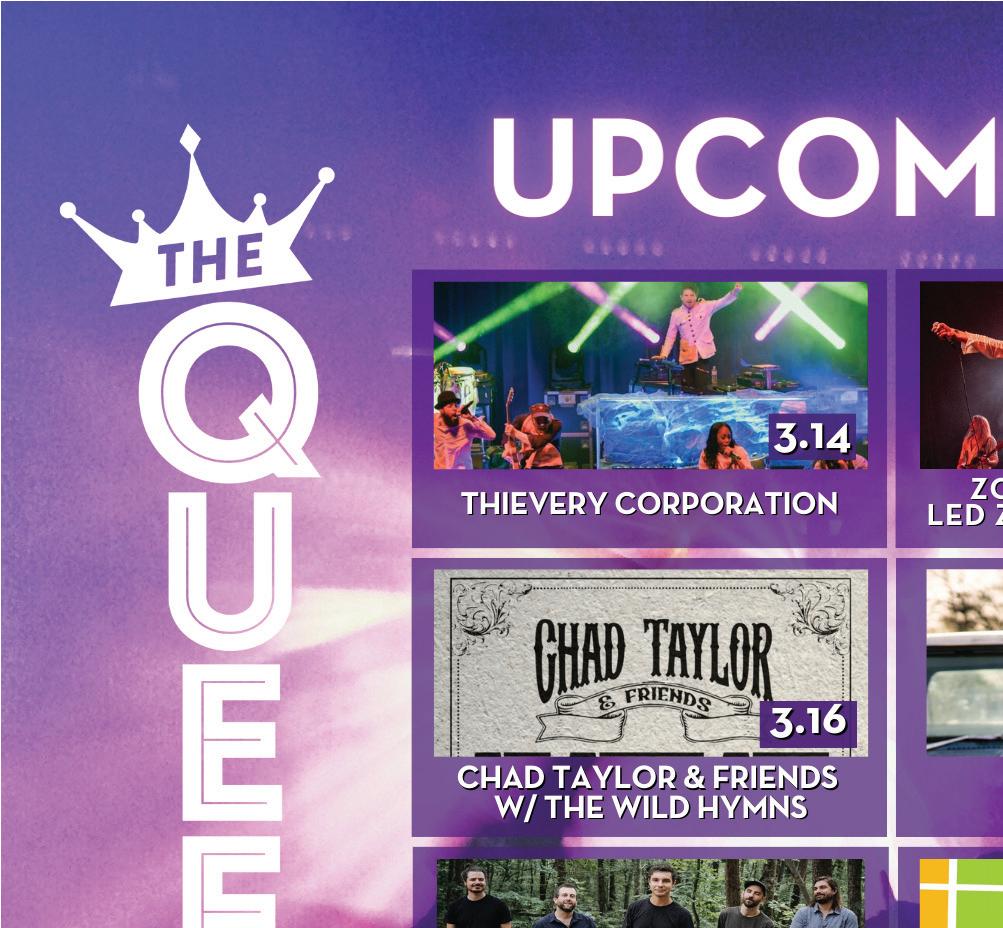 One of those dates is Saturday, March 16, at e Queen, where Chad Taylor & Friends will be playing an intimate show in e Crown.