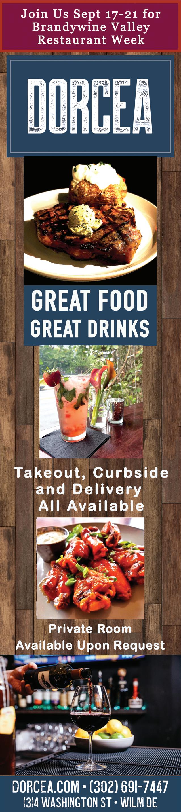 Arecord 24 premier restaurants in Greater Wilmington will o er special menus and special pricing during the 9th annual Brandywine Valley Restaurant Week Sept. 15-21 presented by Chase. Two-course lunches will be o ered for $20; threecourse dinners are $35 or $55. For a list of participating restaurants, visit BrandywineTaste.com.