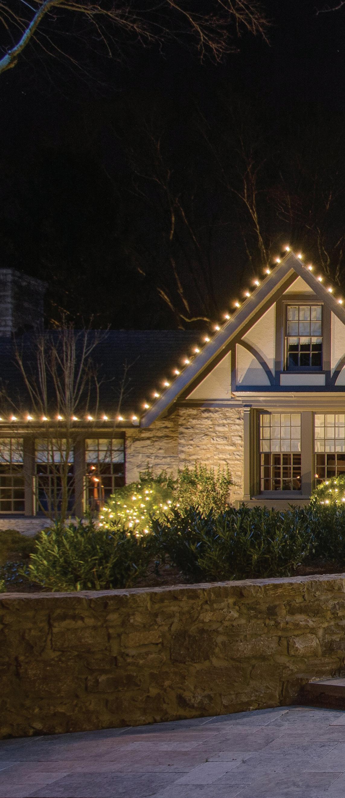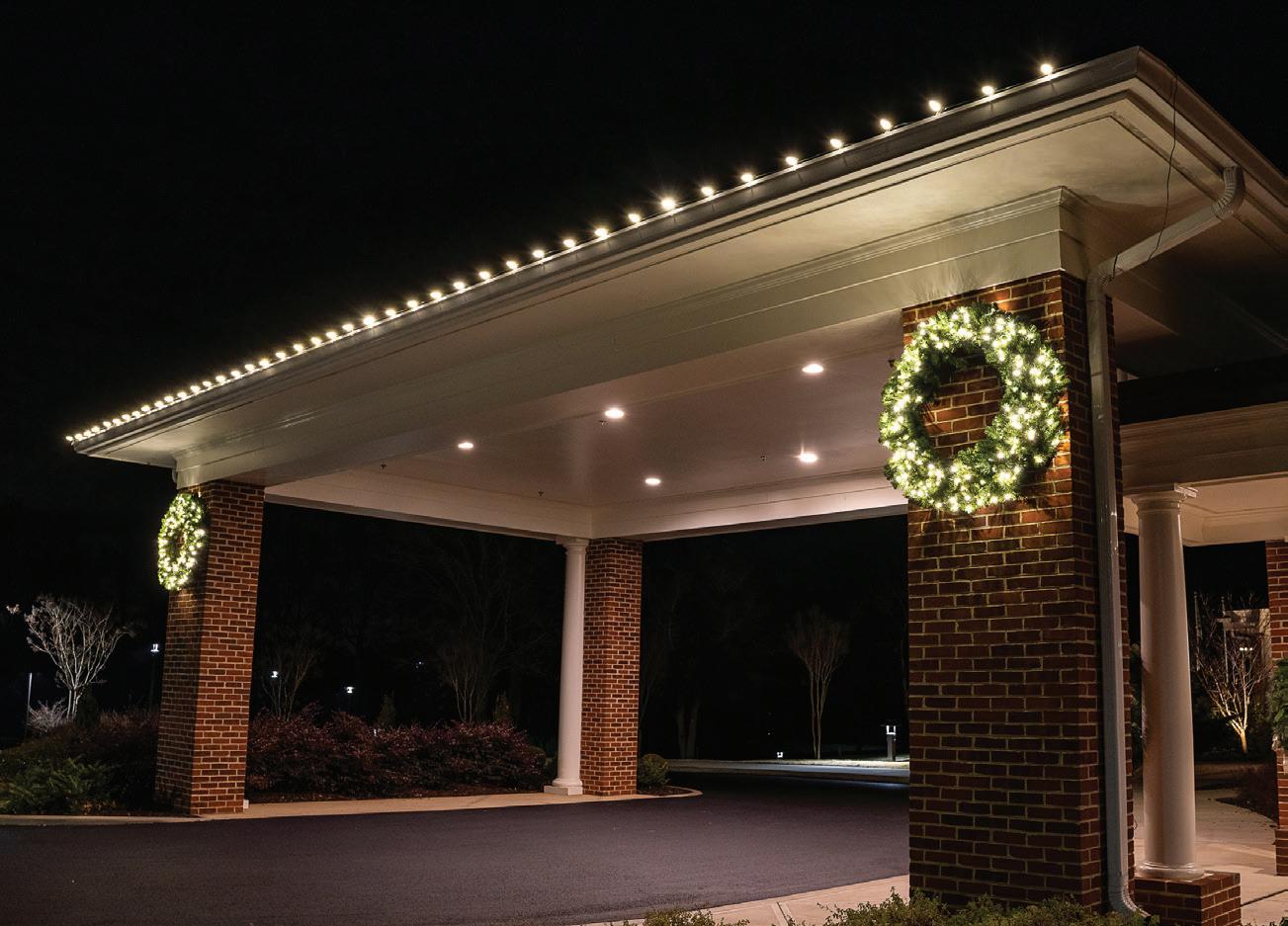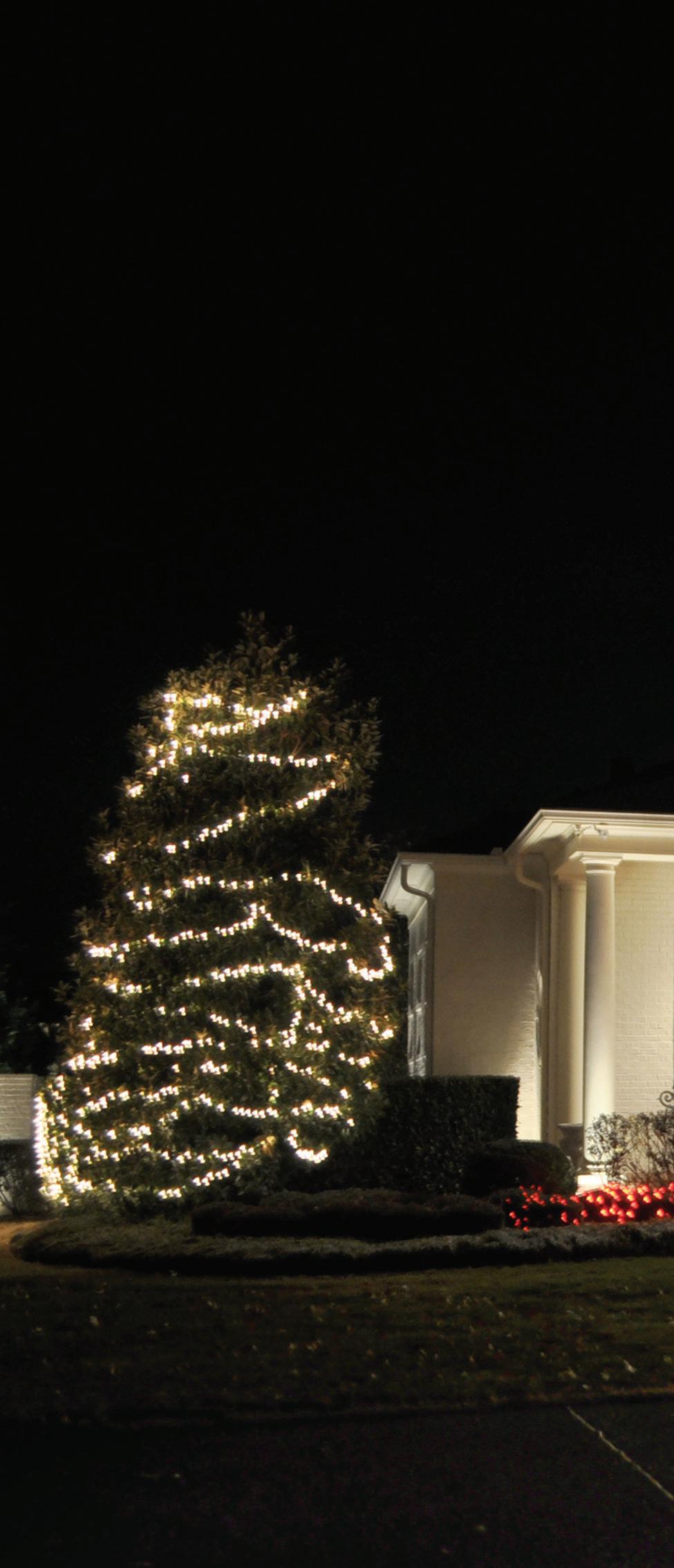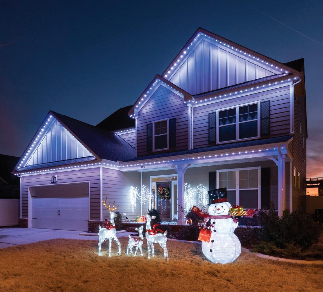 ROOFLINES COLOR-CHANGING LIGHTING Wreaths • Garland • Bow Add-on FRONT DOOR PACKAGES & Tree Wraps • Bursts • Orbs PATHWAYS TREES PERMANENT ROOFLINE LIGHTING Year-Round Use • Animations • Color-Changing