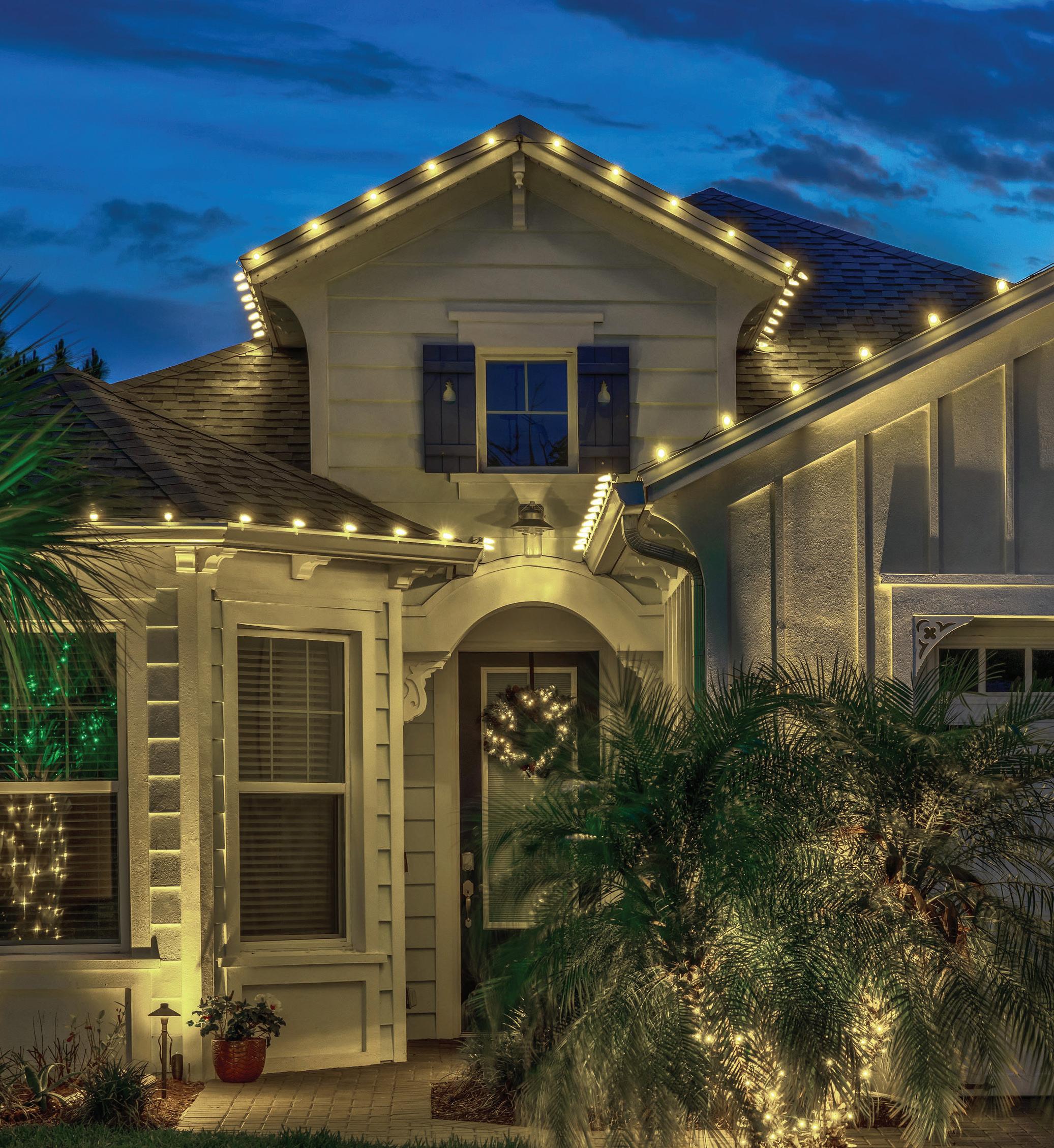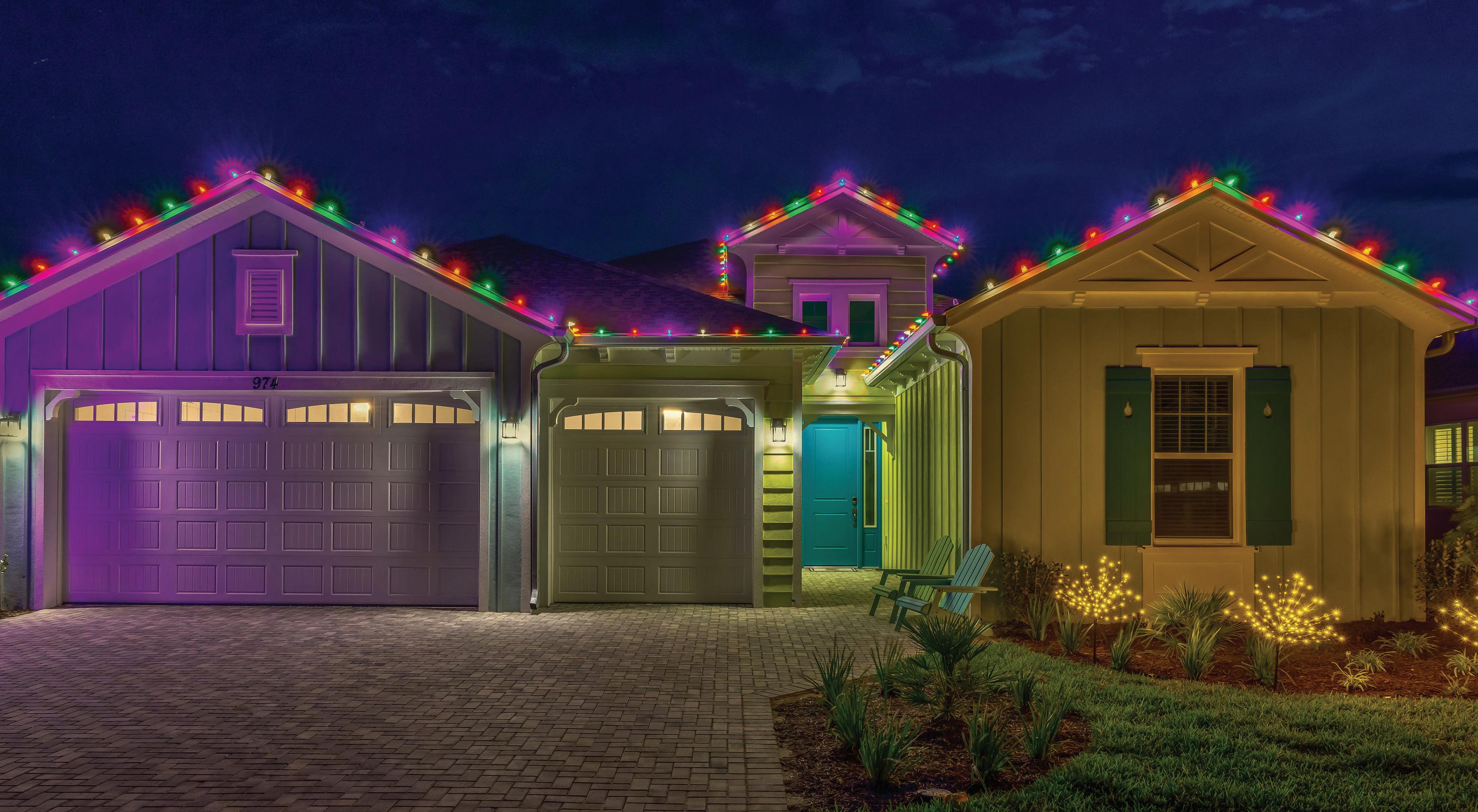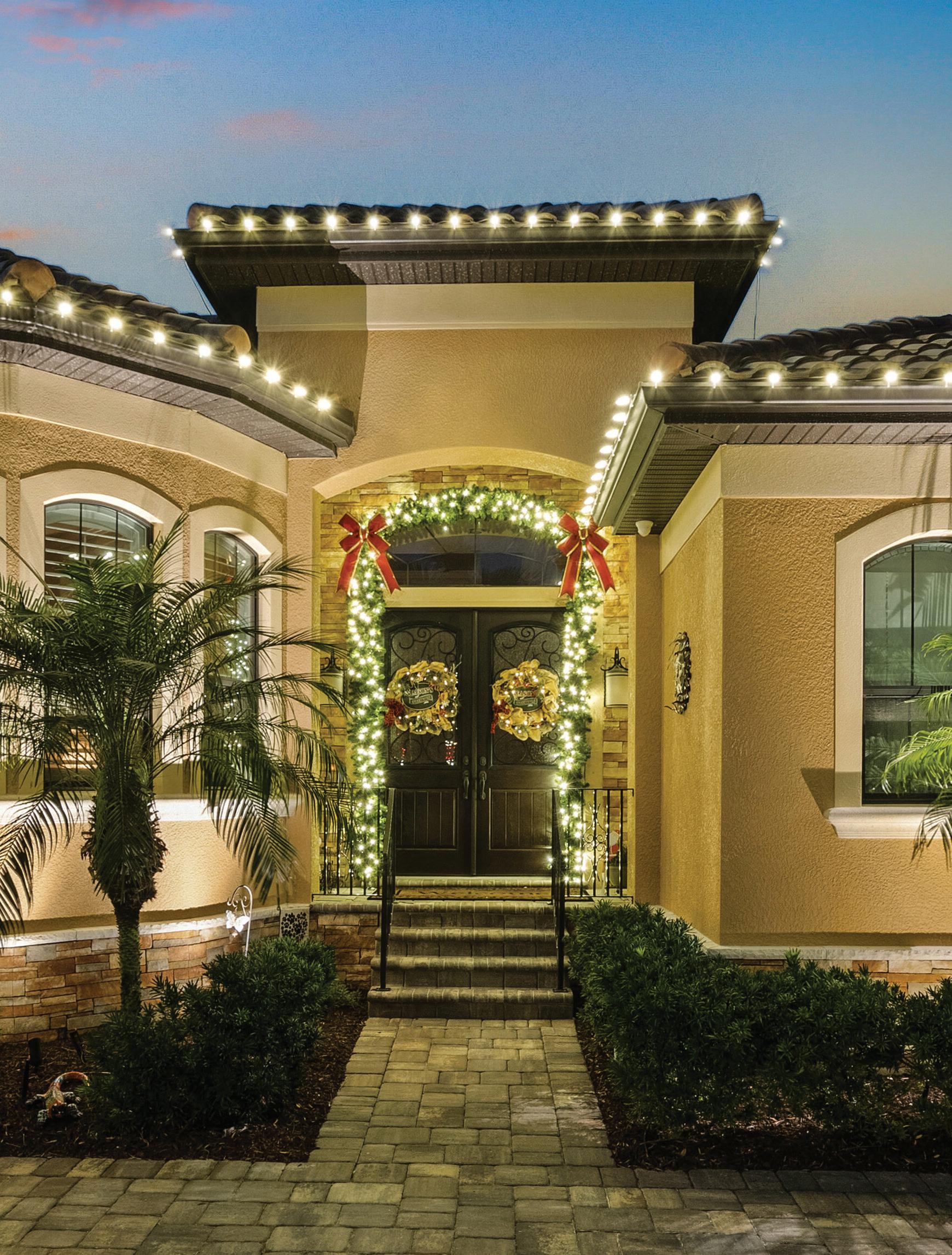 ROOFLINES COLOR-CHANGING LIGHTING Wreaths • Garland • Bow Add-on FRONT DOOR PACKAGES & Tree Wraps • Bursts • Orbs PATHWAYS TREES PERMANENT ROOFLINE LIGHTING Year-Round Use • Animations • Color-Changing