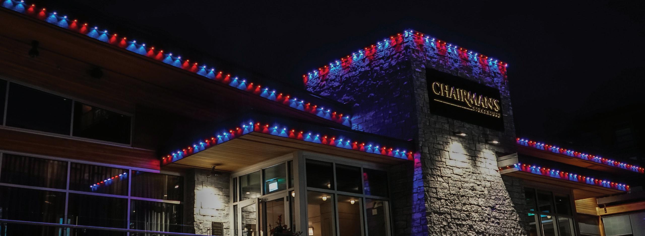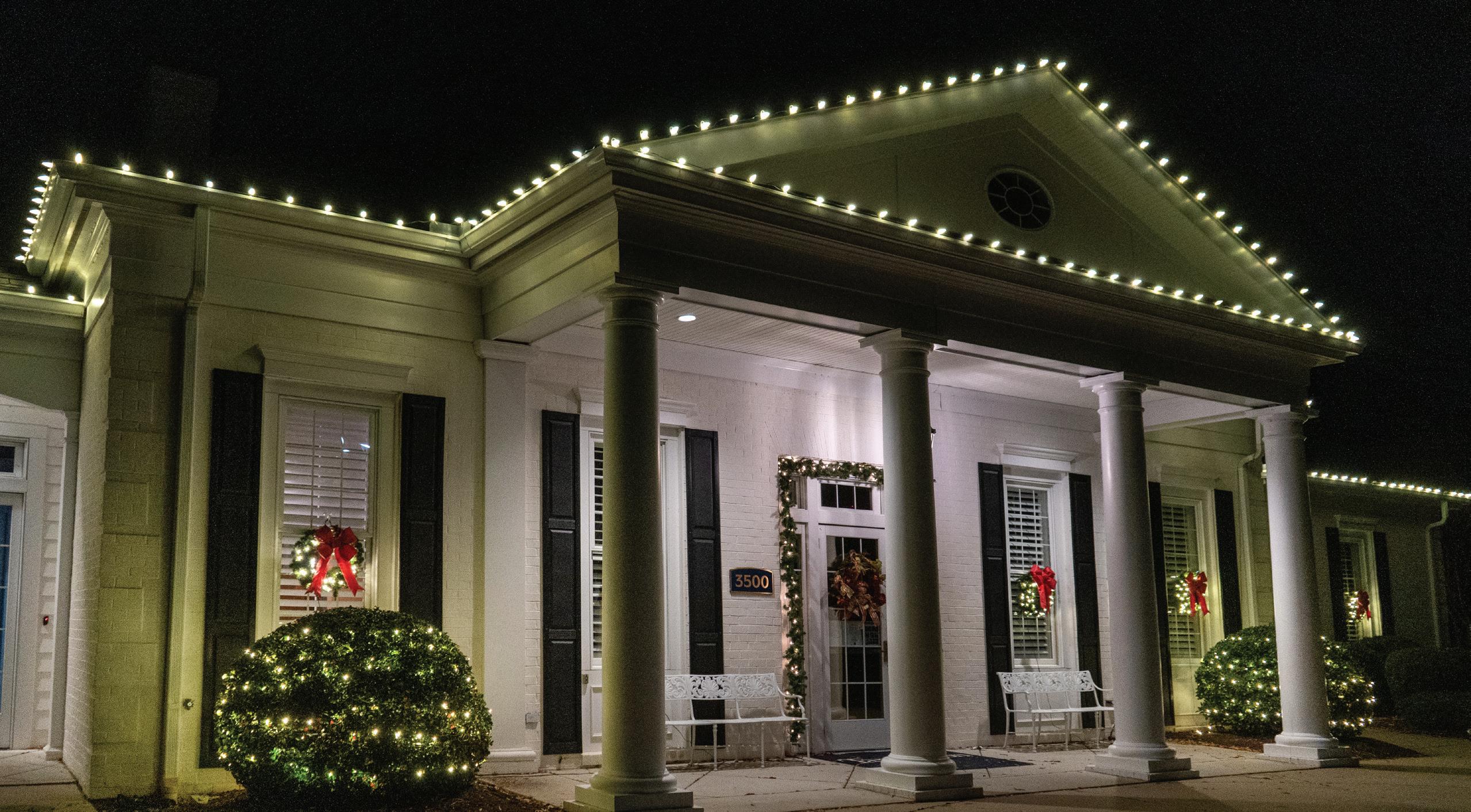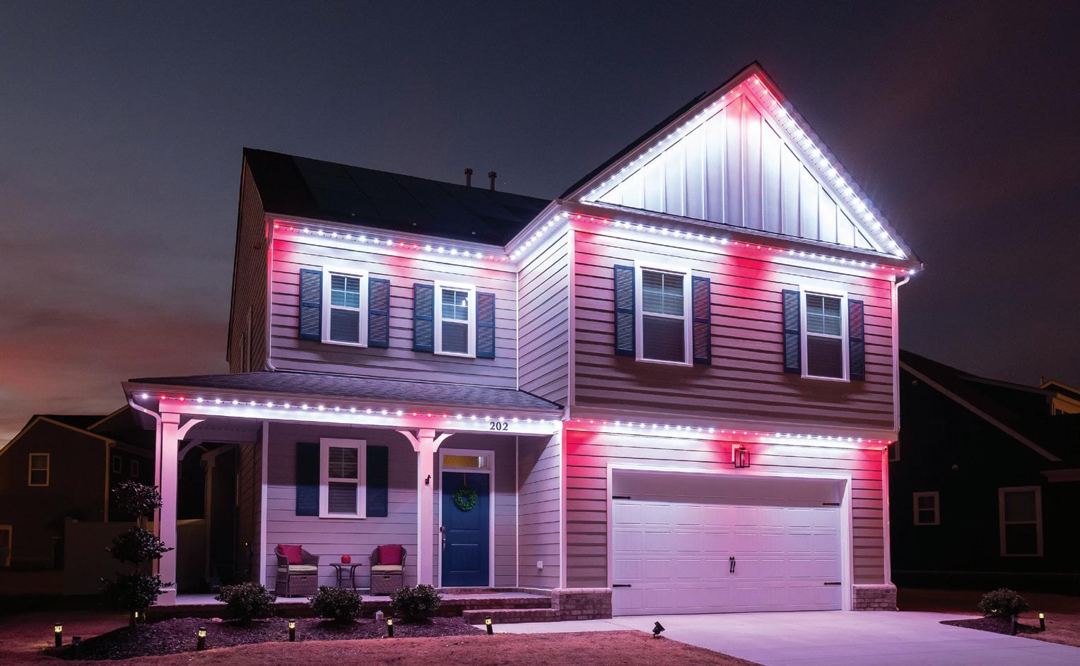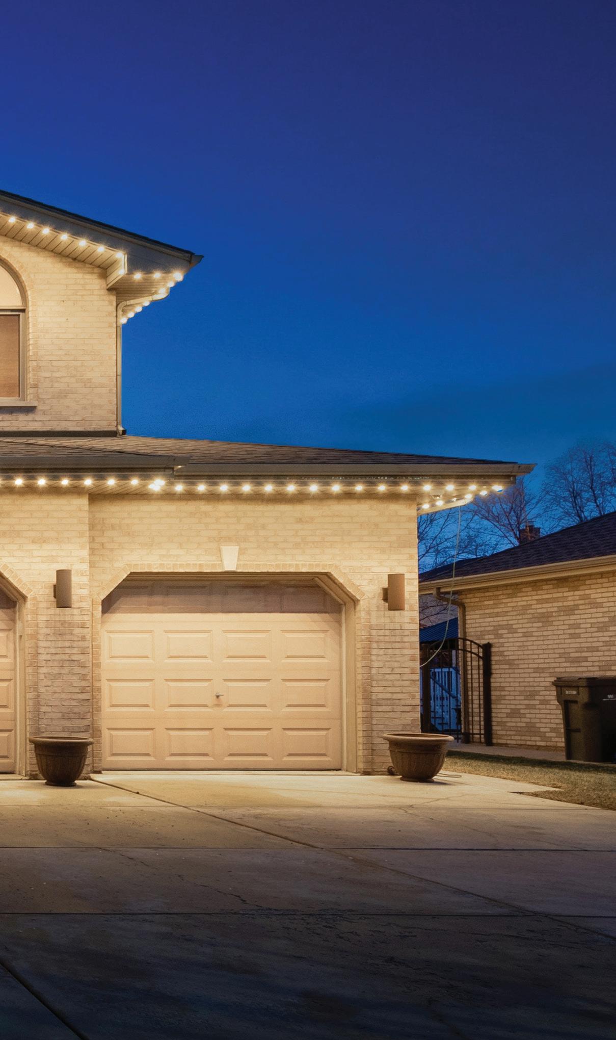 ROOFLINES COLOR-CHANGING LIGHTING Wreaths • Garland • Bow Add-on FRONT DOOR PACKAGES & Tree Wraps • Bursts • Orbs PATHWAYS TREES PERMANENT ROOFLINE LIGHTING Year-Round Use • Animations • Color-Changing
