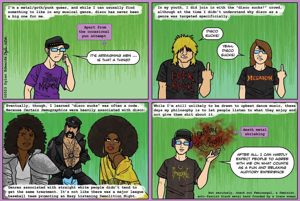 This issue, we celebrate music in all its forms, complete with a fun and sassy, disco-inspired photo shoot. From disco and roller rinks to EDM, these pages practically sing, so read on to find out about some new queer artists to follow.