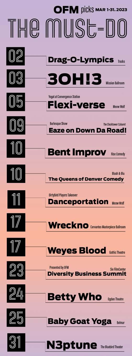 VOLUME 46 NUMBER 12 MARCH 2023 TABLE OF CONTENTS OFM Art • Cartoon • Word Search From The Editor OFM News • Denver's Largest Mayoral Race in 40 Years OFM Culture • Void Phlux & Marionette Clown Toy OFM Thoughts • OFM's Ask a Coach with Ingomu Photo Gallery • Gayborhood at Meow Wolf OFM Reviews • Cannabis Reviews OFM Culture • Energy Bar Cafe • Turn Dreams Into Reality With Yoko Music OFM Astrology • March Horoscopes Photos by Jay Diers 06 07 08 10 14 16 21 22 28 4 OFM MARCH 2023