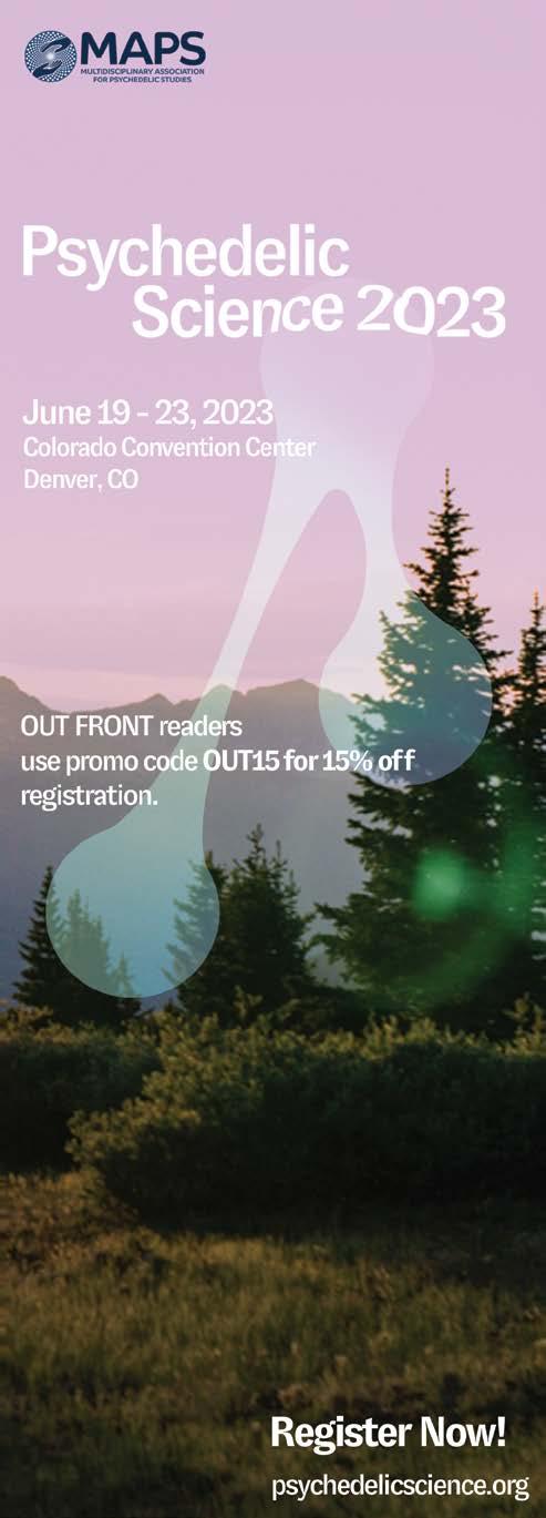 Q PUBLISHING GROUP, LTD IS THE OWNER OF ALL RIGHT, TITLE, AND INTEREST IN THE OUT FRONT BRAND AND LOGO. NO PERSON OR ENTITY MAY REPRODUCE OR USE (OR AUTHORIZE THE REPRODUCTION OR USE OF) THE OUT FRONT BRAND AND LOGO IN ANY MANNER OTHER THAN EXPRESSLY AUTHORIZED BY Q PUBLISHING GROUP. UNAUTHORIZED USE OF THE OUT FRONT BRAND AND LOGO IS STRICTLY PROHIBITED. OFM IS PUBLISHED BY Q PUBLISHING GROUP, LTD., A COLORADO CORPORATION AND IS A MEMBER OF: THE COLORADO LGBTQ CHAMBER OF COMMERCE.