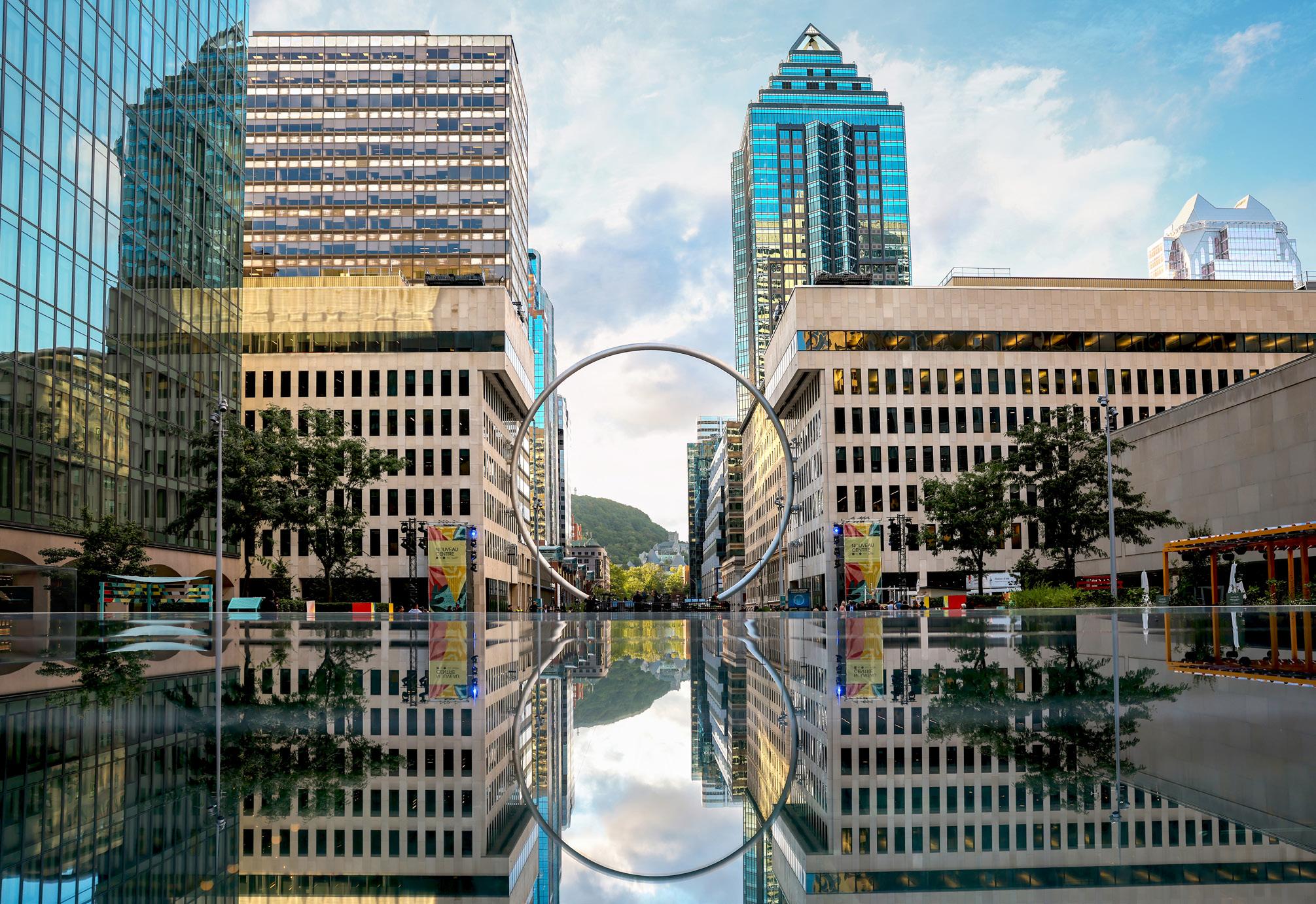 A true icon of Montréal, this 30-metre-wide steel circle is suspended above the staircase to the Esplanade Place Ville Marie. In a touch of Montréal flair, The Ring’s evening illumination mirrors that of the Mount Royal Cross, an unmistakable symbol of the city’s landscape, whilst simultaneously symbolising the historic bond of the built heritage along an important axis in the city’s downtown core.