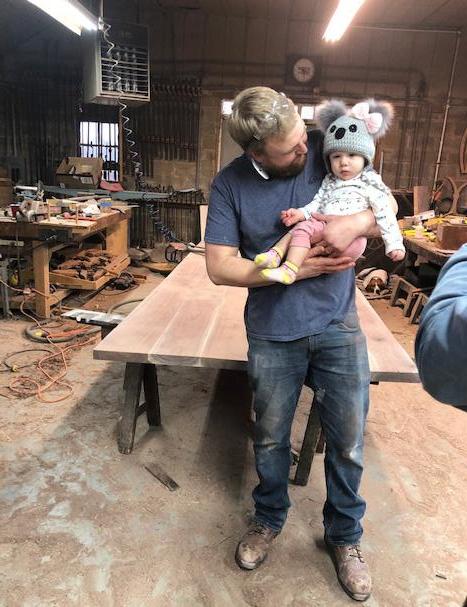 Upper left: we love being together. Above: some of our new products include travel mugs with a bubble finish. Left: some examples of our work. Right: Lyle enjoying some time with his sweet girl after a long day’s work.