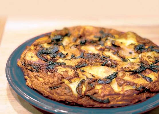 Return the frying pan to the heat and cook for two minutes but do not stir. Pour the beaten egg mixture evenly over the now-cooking layers. When the underside is finished, remove the pan from the heat, covering it with a plate over the top like a lid. Using a cloth to hold the plate in place, flip the pan over, leaving the partially cooked ingredients now on the plate. Slide the tortilla back into the frying pan to cook the other side. Once both sides are browned, eat it straight from the pan or serve it separately. Eat the tortilla at room temperature with a good cold beer. Enjoy the tortilla on its own or with a tin of tuna and sliced tomato. If it’s a cold/cool climate, wrap and carry some pieces with you on the road for a quick roadside snack. For variation, add in some finely chopped chili and sliced zucchini.