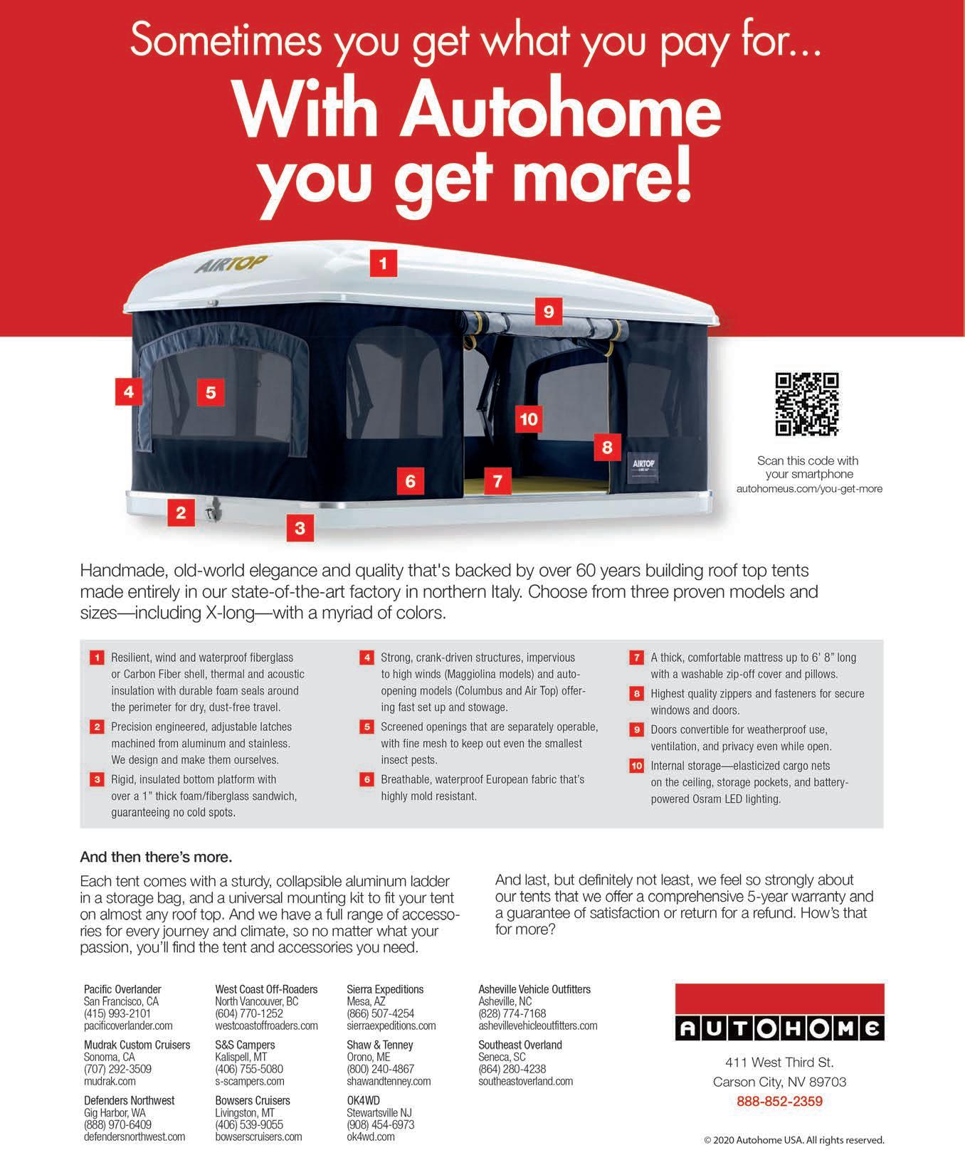 I found [the Summer 2020 issue in] my mailbox today. Why did it take 14 pages of ads to get to something interesting? I know advertising pays the bills, but I don’t have super deep pockets to afford nearly all of what you promote. The 500K vehicles can’t go where my humble 1982 Land Cruiser can go. Your publication has been interesting through the years, but I can’t see reading any more ads.