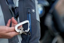 An Alpha-Bet soup of specialized Gore-Tex, abrasive resistant fabrics, zippers, reflective materials, and armor indicates these suits mean business. While men’s and women’s variants have different colors, vent locations, and physique-specific cuts, they do have similar construction and materials. Key refinements include an offset neck tension cord (helps prevent ponytail snags), and goat hide on the elbow and upper arm for sudden mishaps, as well as at the lower inner thigh area to mitigate wear. External pockets and zippers on the jacket and pants are placed in intuitive and useful locations. Jackets have various pockets on the left and right interior, along with a few hidden ones. Along with abrasionresistant materials, D3O inserts provide Level 1 crash protection. Useful Klim intel here: North American users who want increased impact protection can up-armor to Level 2 Conformité Européene (CE) European standards, as all slots accept inserts from either specification.