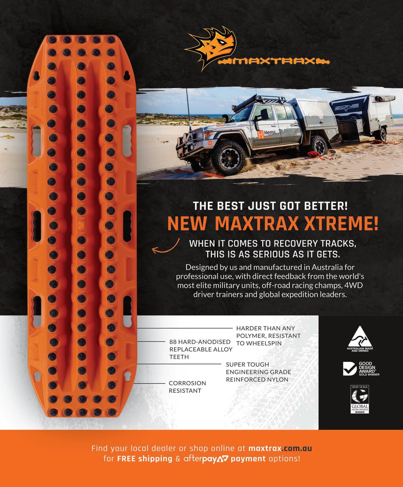 MaxTrax has redefined self-recovery with the invention of its reinforced nylon recovery tracks. Owner Brad McCarthy also recognized the opportunity to improve powered recovery or vehicle-to-vehicle extraction, and started a new line of accessories that have been optimized for light weight, performance, and safety. Last year, I had the opportunity to use prototype versions of these new tools along the Great Australian Bight, during an