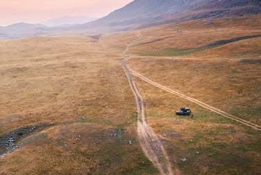 OFFER WILDLIFE THE RIGHT OF WAY Famous tundra roadways are relative newcomers, products of the previous decades. Alaska’s Dalton Highway began as a supply road in 1974, and construction on the all-season highway to Canada’s Tuktoyaktuk wasn’t approved until 2013. On the opposite side of the world, Norway E69 arrived in Nordkapp in 1956. These roads we dream of traveling fragment wildlife habitats, but animals’ instincts to follow migration routes continue.