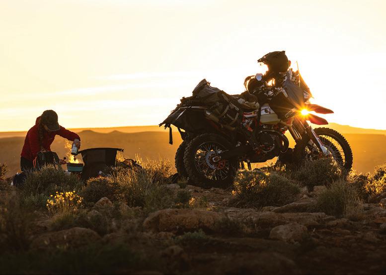 British-born adventurers Lisa Morris and Jason Spafford, known as Four Wheeled Nomad, traded scuba fins for motorcycle boots after a decade as instructor guides. Their epic 80,000mile ride from Antarctica to the Arctic spanned nearly five years. Jason’s 30-year acclaim as a photographer and filmmaker complements Lisa’s narrative weaving since 2000. Beginning in 2018, they overlanded the UK and Europe in their trusty Toyota Hilux, White Rhino, for five years. Now, astride their KTM 500 EXC-Fs full-time, they’re predominantly off-road in the North American wilderness, capturing their thrilling escapades on YouTube. Their mantra remains: “If you’re excited by your current path, you’re on the right one.” @fourwheelednomad