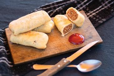 ASSEMBLY Roll dough balls into rectangular flat pieces about 4 inches in length, big enough to completely cover your sausage. Cover the top and bottom ends of the sausage and then fold over the longer sides of the dough, pressing the seams together. Add to a baking tray seam-side down. Cover with a damp cloth and let rise for 60 minutes. Bake at approximately 400°F for 16-18 minutes (whether in a camp oven or foil over the fire). Turn them after 12 minutes. Enjoy with ketchup or a dollop of mustard.