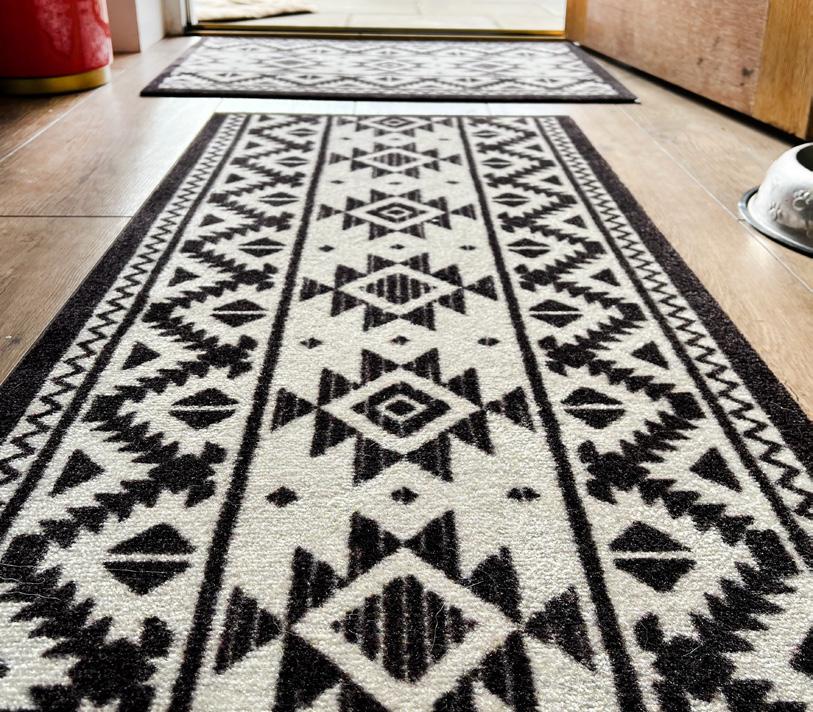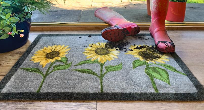 My Daisy Cow mat features two cheerful cows surrounded by daisies on a light green background with a dark green border. It resists stains, traps dirt, and is washable at 30°C. Size: 19.6 x 29.5 inches (50 x 75cms). Ref. M201731 £25.99