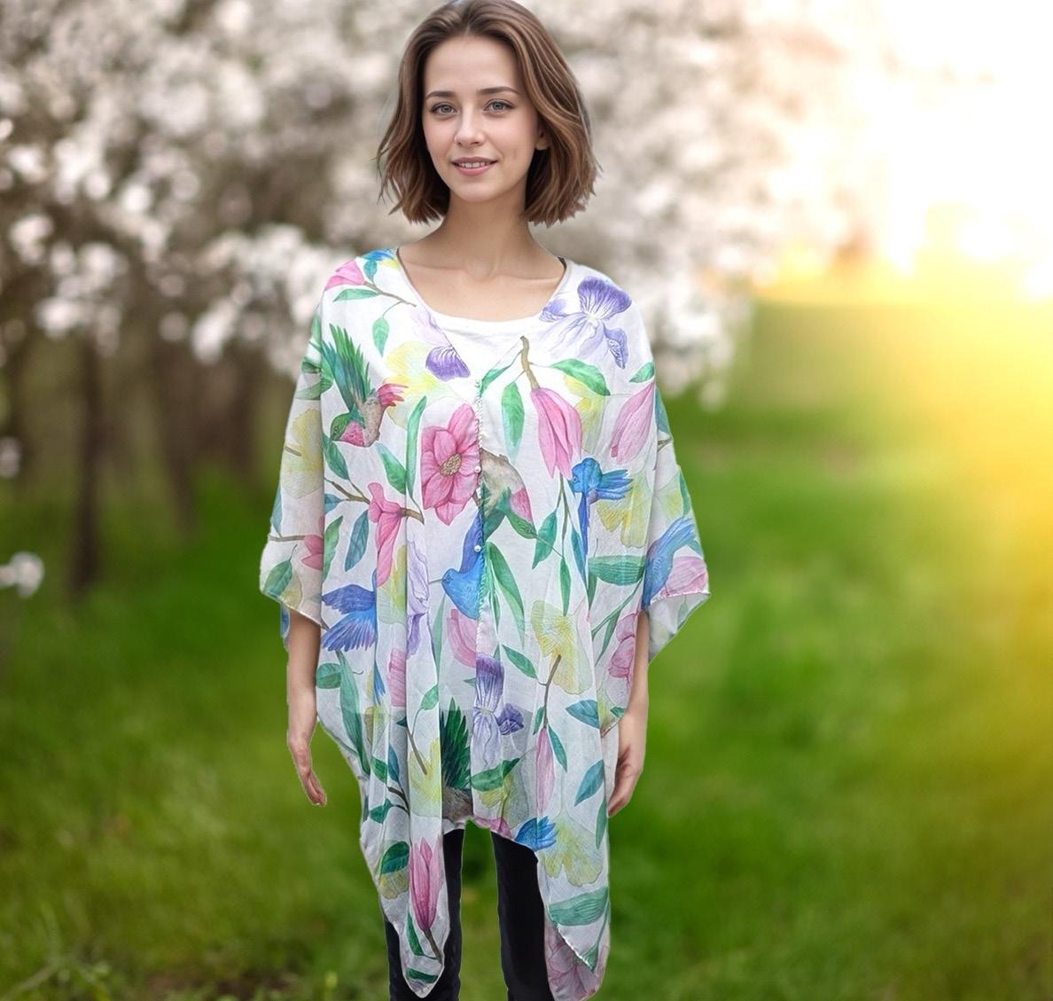 The elegant Hummingbird design on this pearl poncho with floral pattern and faux pearls fastening will prove perfect for beach holidays or at home. Size: 59 x 39.3” (150 x 100cms). Ref. M202548 £25.99