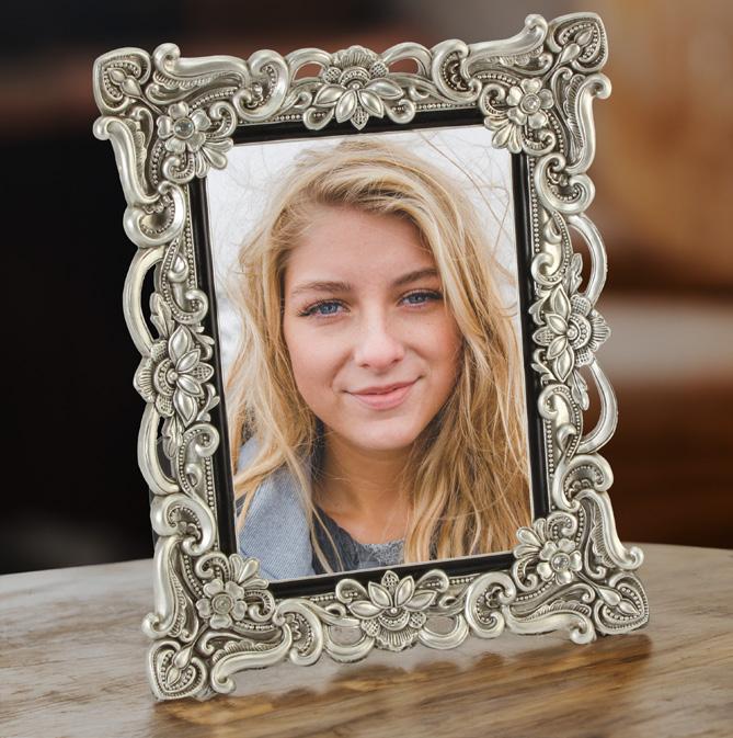 Antique ornate filigree swirls give this frame a vintage feel while the champagne finish brings an element of subtle glamour that is neutral enough to fit in with any interior. Stands 12.9” (33cms) tall with a 5 x 7’’ (13 x 18cms) aperture. Ref. M201415 £19.99
