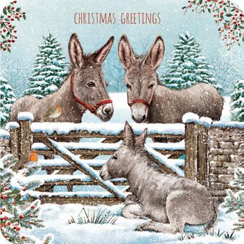 10 cards, 5 each of 2 Wintery Walk scene designs supplied with envelopes. The greeting inside reads “Merry Christmas and a Happy New Year”. Size 5.3’’ (13.7cms) square. Ref. A198679 £6.50