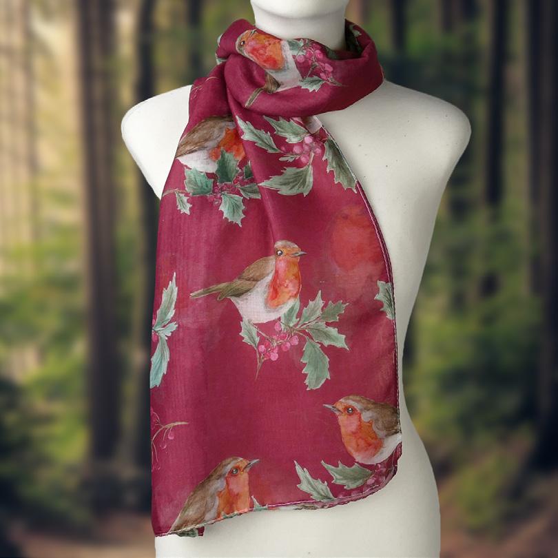 The rich mulberry tone of this festive robin and holly themed scarf makes for a stylish gift or self indulgent purchase. Perfect for that afternoon walk to keep the chills at bay, in 100% polyester it measures 70” 27.5” x (180 x 70cms). Ref. A199408 £15.99