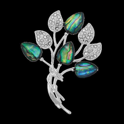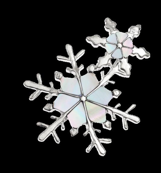 A double snowflake brooch set in icy silver tones and finished with white shimmering mother of pearl. Measuring 1.7 x 1.3” (4.5 x 3.5cms) with a traditional twist fastening for added security. An elegant touch to any winter wardrobe.