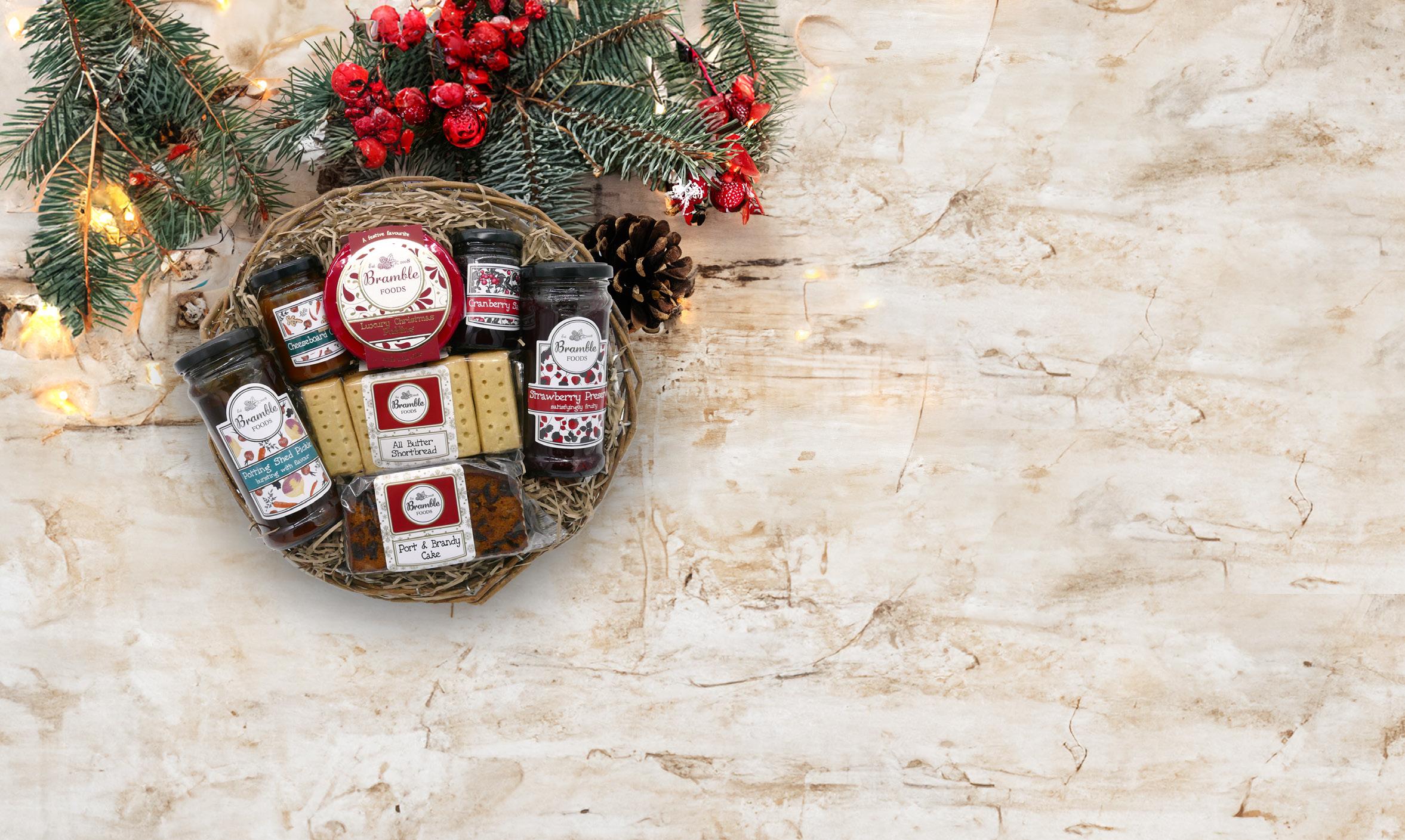 This Christmas-themed hamper includes a great selection of winter warmers to satisfy most palates - a fruity Christmas Pudding infused with a hint of cider, jars of Potting Shed Pickle and Cheese Board Chutney, a jar of delicious Strawberry Preserve, a pack of All Butter Shortbread fingers and a slab of moist Port & Brandy cake, all packed in a wicker presentation basket. Combined contents weight 1.5kg Ref. A164278 £42.99