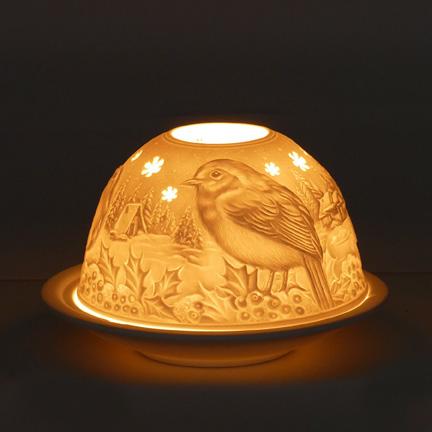 Elevate the charm quotient of your home with this unique light-up Christmas decoration in the shape of a Robin perched upon a tree stump. Ideal for placing on the mantelpiece, tabletop or windowsill; this decoration comes with an integrated LED tea light that emits a warming glow. Size 4.3 x 3.5” (11 x 9cms).
