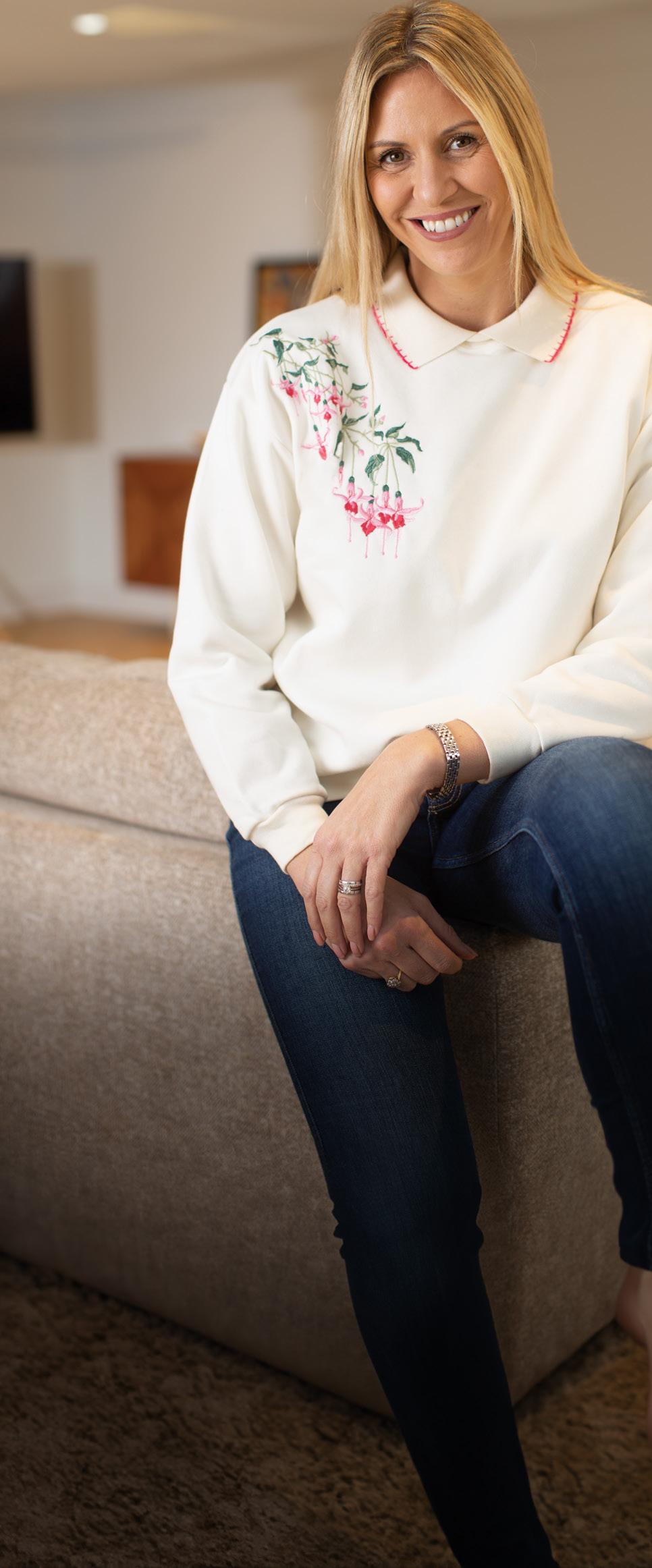 A new sweatshirt with snowdrops and everyone’s favourite chirpy chappie expertly embroidered onto a navy acrylic/cotton fleecy backed polyester mix jersey - with contrasting red knitted collar, just right for the winter season.
