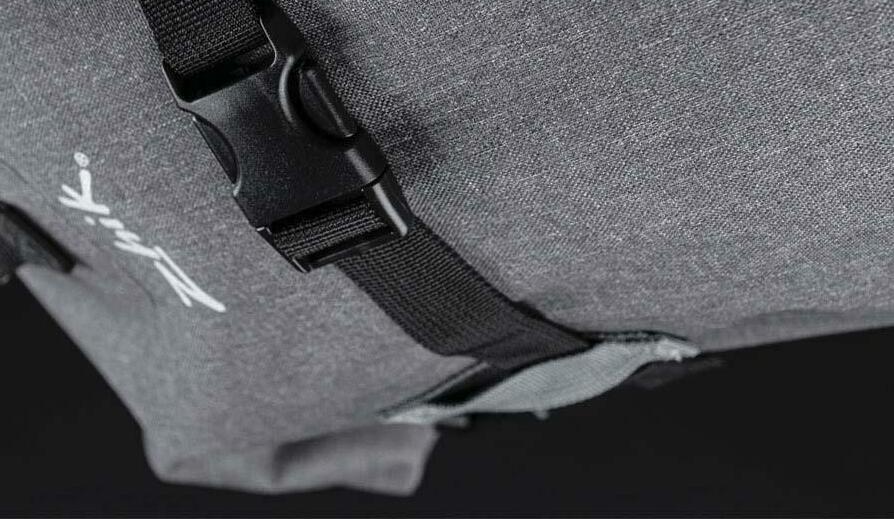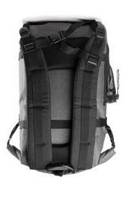 Tissu 600 D aspect chiné, 100 % étanche. Fermeture par enroulement du haut et clipsage. Compartiment intérieur et poche latérale pour bouteille d’eau. Sangles de resserrage : permettent de réduire le volume. Support matelassé pour ordinateur portable. Bretelles avec bandes en mesh respirant.