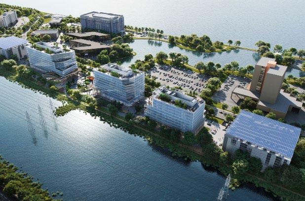 At the core of the campus, a catalytic central plaza serves as a vibrant social hub, enhanced by engaging site features, sculpted building massing, and integrated bike paths. Innovative cooperative land agreements further elevate the quality of public spaces, ensuring a thriving, future-ready district that blends urban energy, environmental responsibility, and innovation-driven workplace design.
