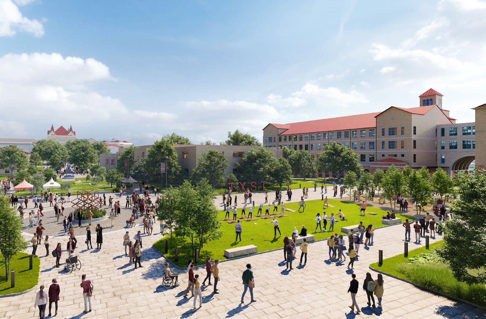 Poised for transformation as it approaches Tier-1 research status and grows enrollment beyond 40,000 students, Texas State University is shaping a future fueled by innovation, academic excellence, and a dynamic campus experience. Balancing innovation with stewardship, the plan revitalizes existing facilities, strengthens infrastructure resilience, and enhances Texas State’s iconic landscapes. It champions sustainability, mobility, and placemaking, creating a studentcentered environment that sparks collaboration and discovery.