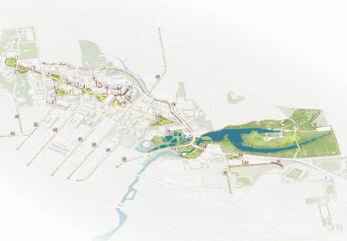 This strategic framework supports sustainable growth, ensuring UNC Charlotte remains a thriving, studentcentered institution. By shaping a network of well-connected neighborhoods, the plan fosters cohesive communities, strengthens campus identity, and enhances accessibility. Open spaces—including the Toby Creek Greenway—are seamlessly integrated into campus life, prioritizing mobility through improved pedestrian, bicycle, and transit connections.