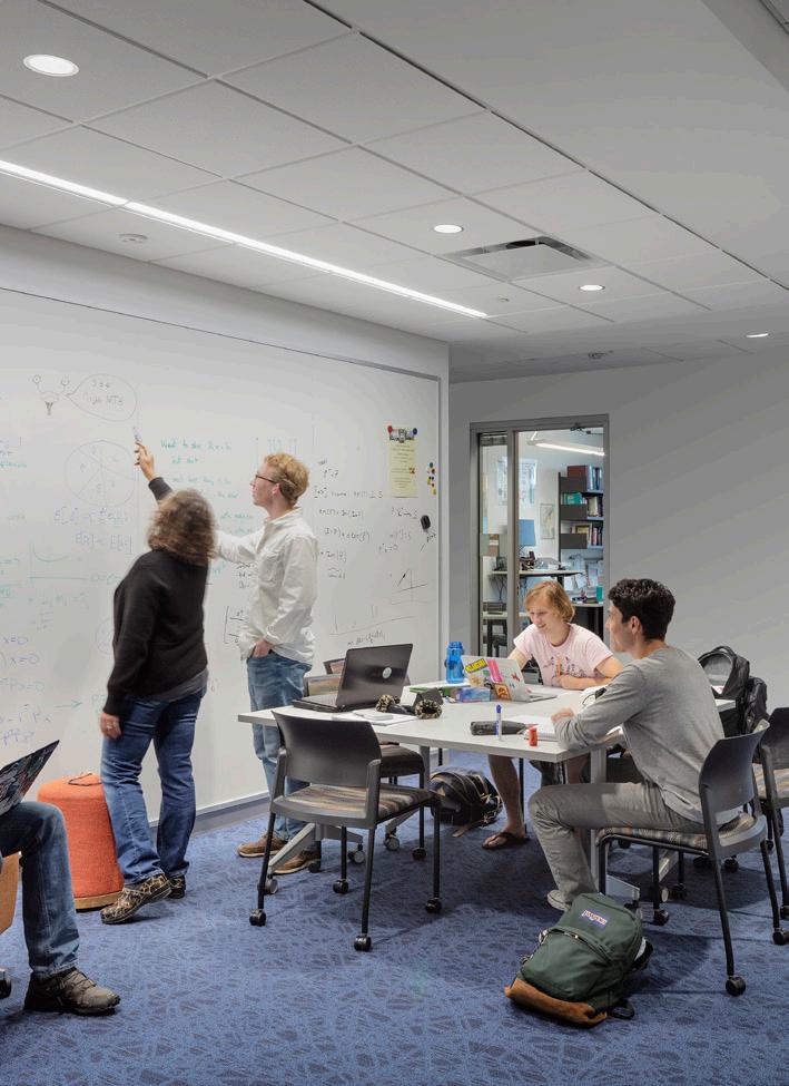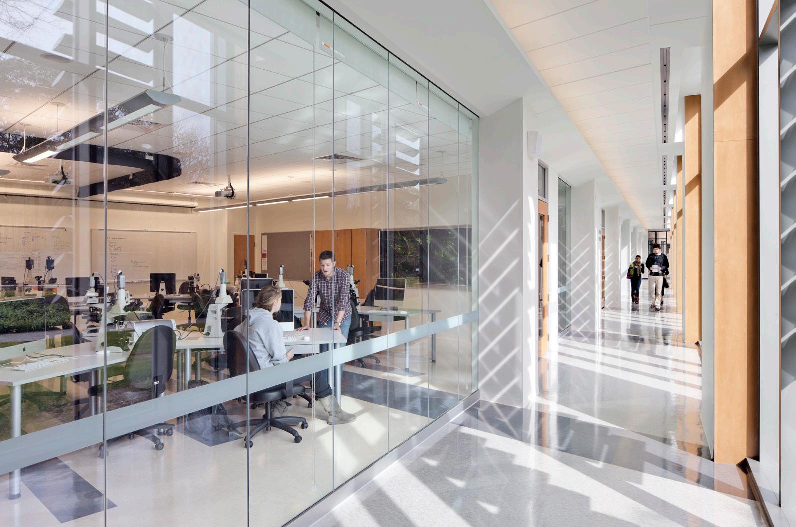 Home to multiple programs, the complex is designed for collaboration and interdisciplinary discovery. Faculty offices are interwoven throughout, ensuring easy connections between students and professors.