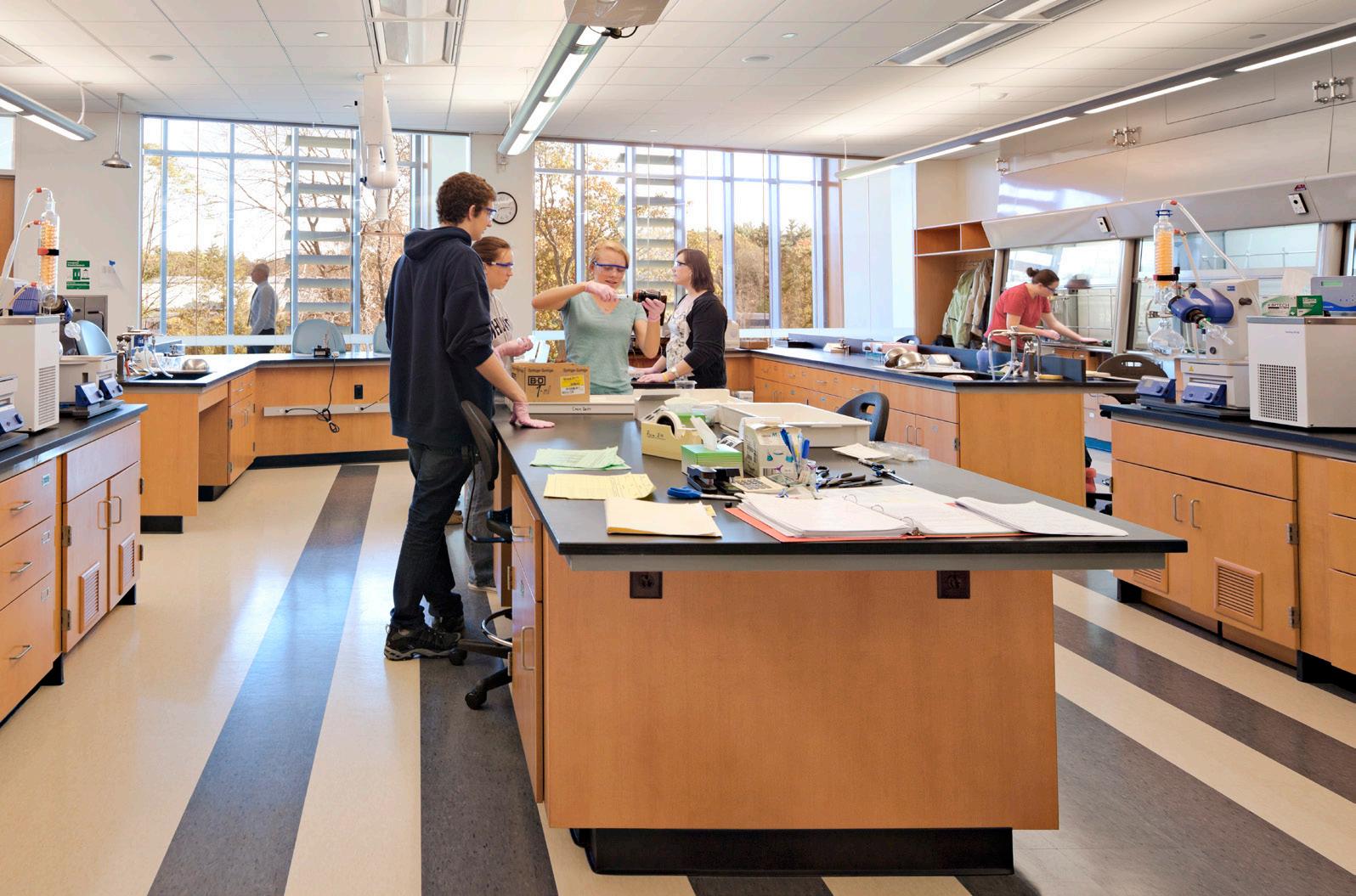 The Ruth W. Williams Hall of Life Science supports the College of Wooster’s approach to teaching and research as a pedagogy, its liberal arts mission, and long-term flexibility with reconfigurable laboratory and classroom spaces.