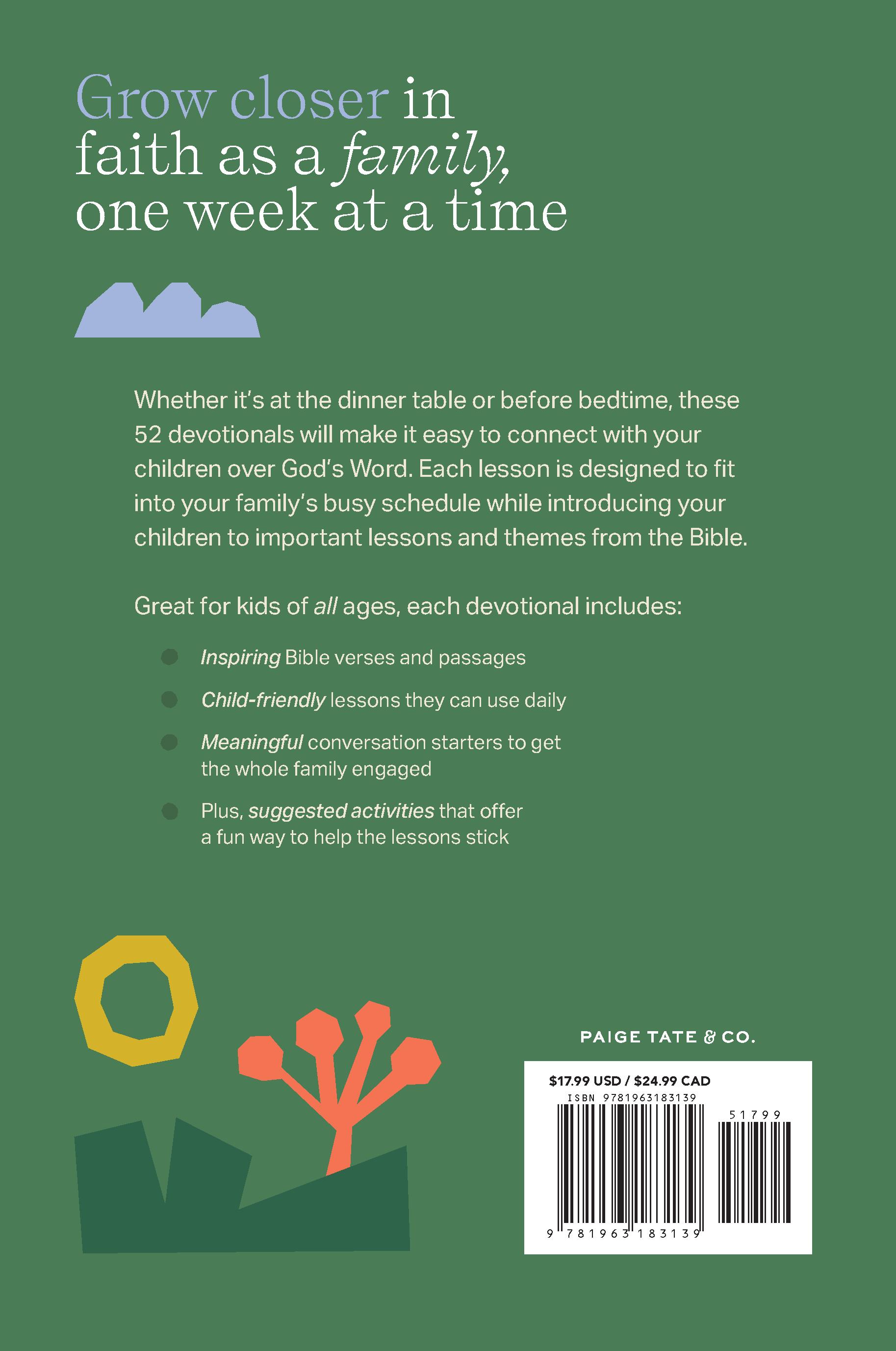 God wants us to grow deeper in our understanding and love of Him. 2 Peter 3:18 tells us, “…grow in grace and knowledge of our Lord and Savior Jesus Christ” (New International Version). And who better to do this with than your family? While reading each week’s devotion, answering the questions, and working on the activities, you and your loved ones can grow closer together and closer to your loving, heavenly Father. Remember, God doesn’t want you to just survive and weather the storms, He wants you to thrive. As you dive into these pages, I