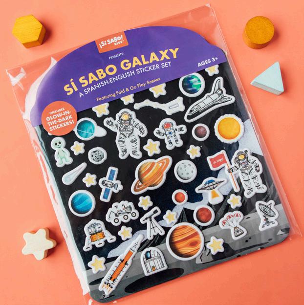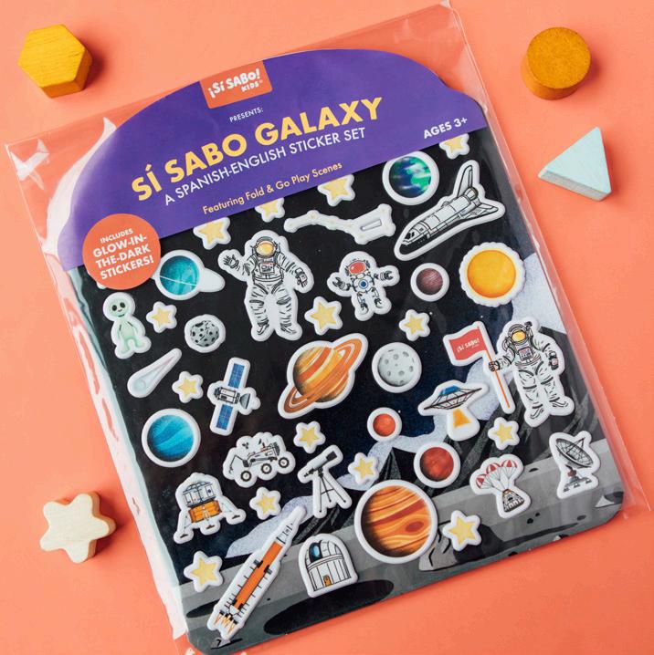 Get your little one started on the path to bilingual learning with this vibrant English–Spanish sticker book set. Kids will expand their vocabulary in two languages while they play with over 30 reusable stickers that explore the wonders of space.