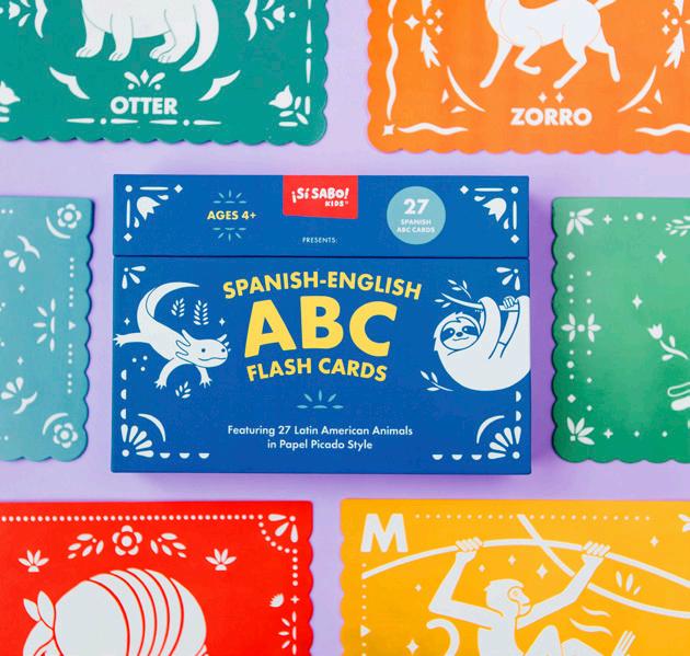 27 Bilingual Alphabet Flash Cards Featuring Latin American Animals in a Papel Picado Design