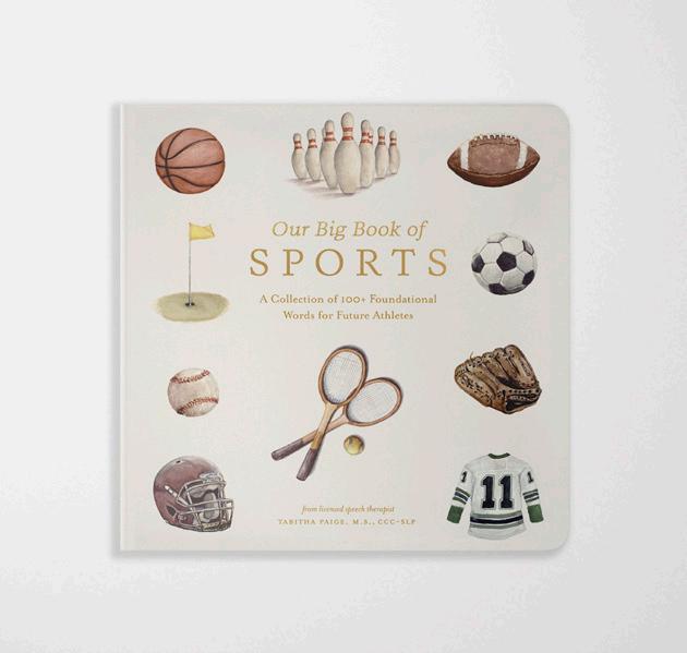 This high-contrast baby book features striking black-and-white artwork of classic sports gear— like soccer balls, baseball gloves, footballs, and more—to support baby’s developing eyes while introducing them to the exciting world of sports. With its fold-out accordion design, this book is as functional as it is beautiful. Use it during tummy time, prop it up during diaper changes, or lay it flat for early play and bonding.