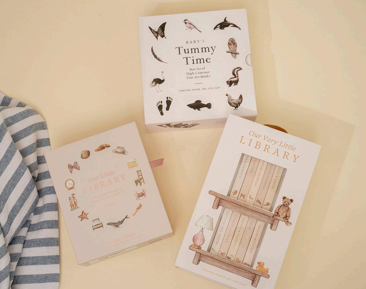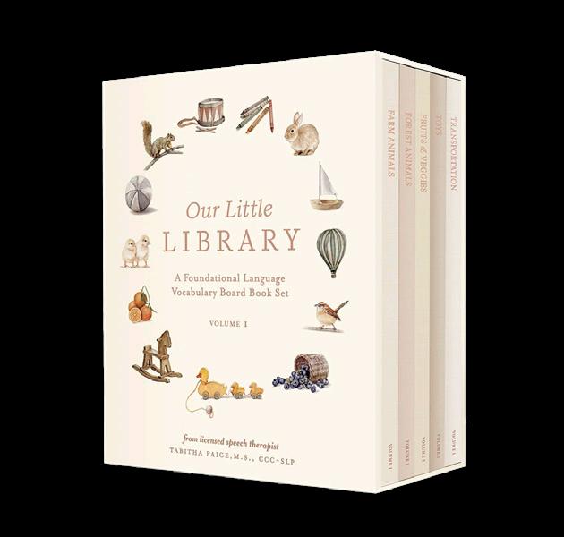 Designed by a professional watercolor artist and licensed speech therapist, Our Little Library Vol. 3 features charming watercolor illustrations and foundational first words that will help you build your child’s vocabulary. The durable materials and small book size also make them perfect for your baby’s little hands.