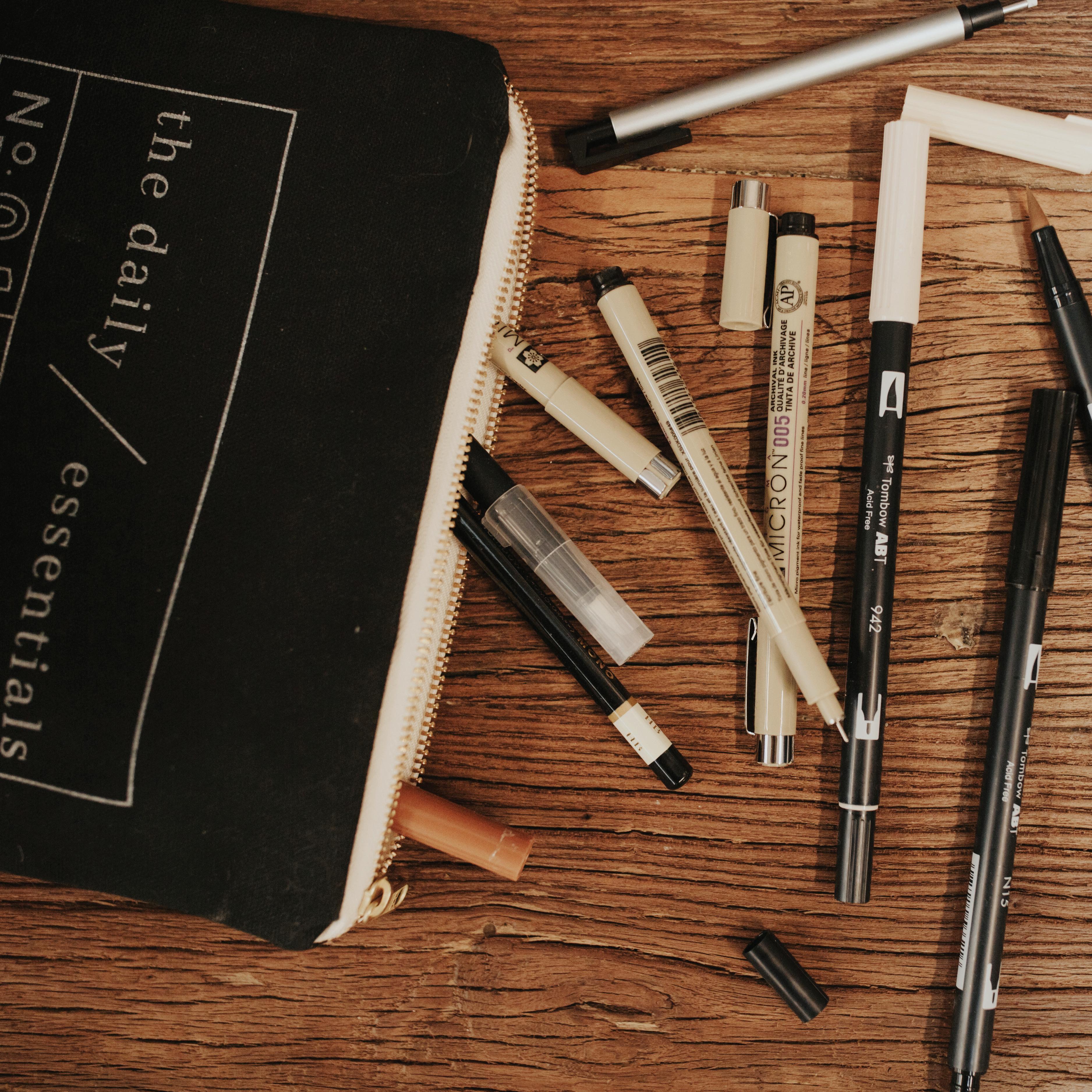 2. Try all sorts of pens. In the next chapter, I will share some of my favorite tools. Don’t limit yourself to these, however. Try out thick, thin, brush, and broad tips.