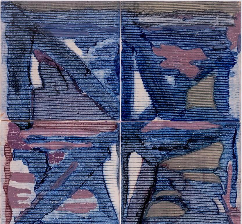 Painel de 4 azulejos em cerâmica Viúva de Lamego, montados em placa de acrílico